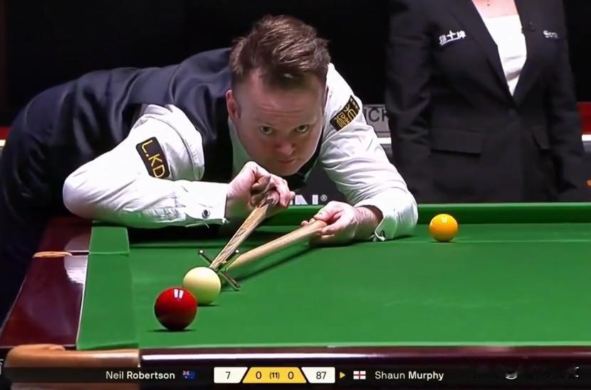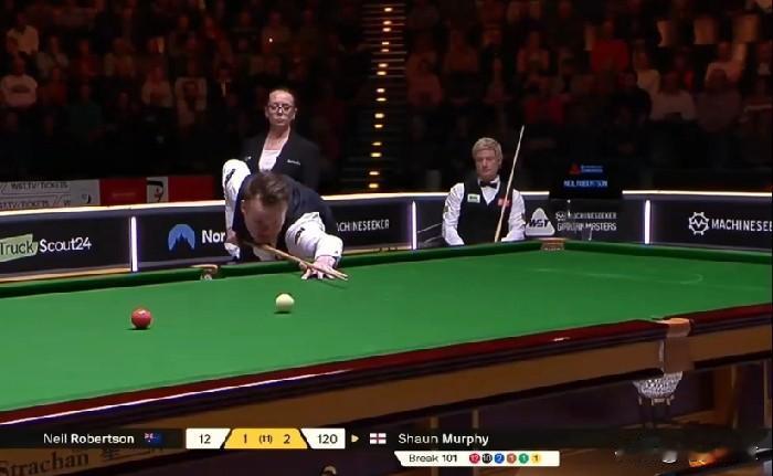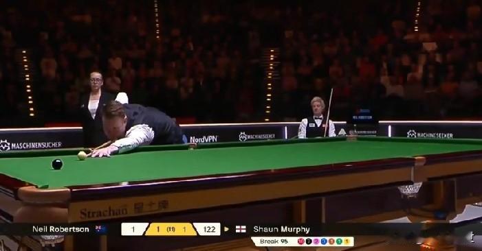 惊悚的巅峰状态!让墨尔本机器也有点囧了。 2026斯诺克德国大师赛,尼尔•罗伯逊vs肖恩•墨菲的半决赛,刚结束了第一阶段的前四局的较量,墨菲暂时以3:1在11局抢6的赛制中取得领先。 肖恩•墨菲,在前四局的炸裂表现堪比巅峰!三杆破百、93%进攻成功率、零失误的架杆,就连进攻至上的墨尔本机器,也只能在比赛的第二局通过零敲碎打(69:0)扳得一城,忌惮于墨菲犀利的进攻、严谨的防守,墨尔本机器也显得有点被缚手缚脚的投鼠忌器!