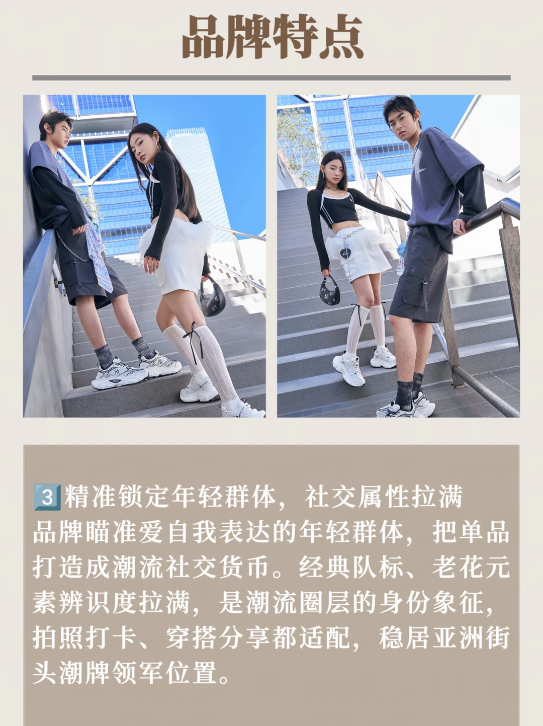品牌瞄准爱自我表达的年轻群体,把单品打造成潮流社交货币。经典队标、老花元素辨识度拉满,是潮流圈层的身份象征,拍照打卡、穿搭分享都适配,稳居亚洲街头潮牌领军位置。