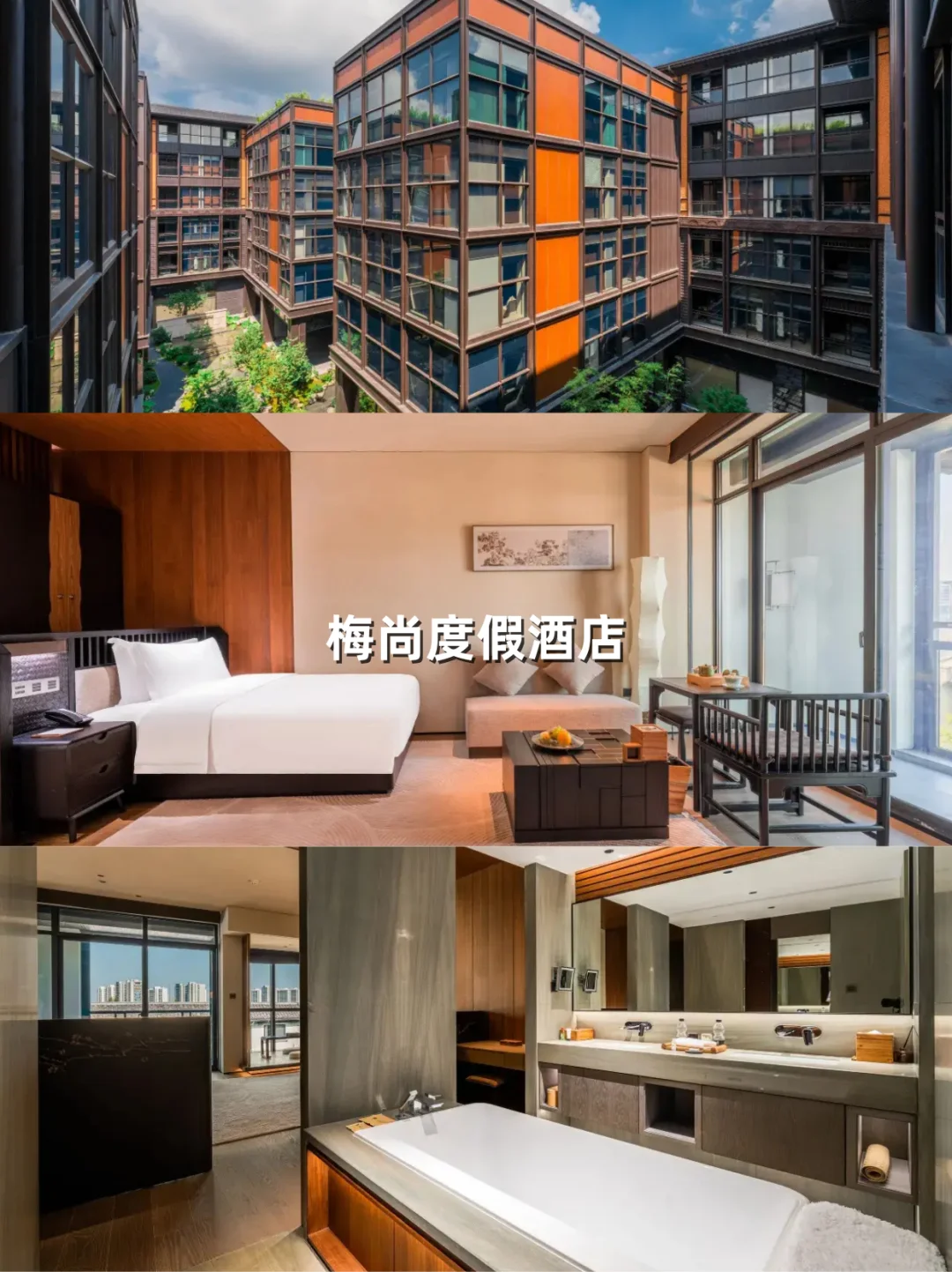 ③梅尚:房间大且品质高级,有浴缸、阳台、全景落地窗,床是2m的,面临古镇街景或花园。