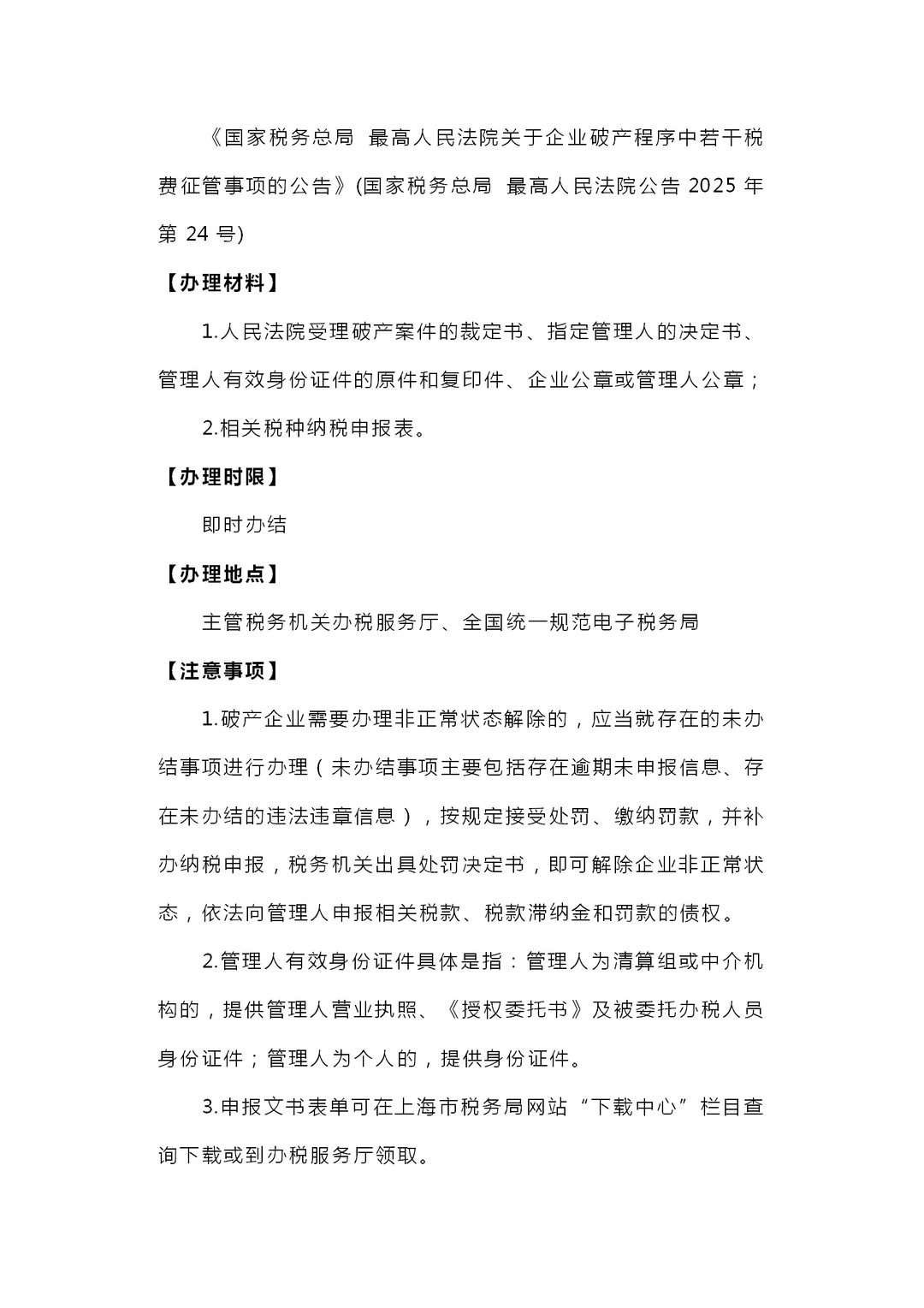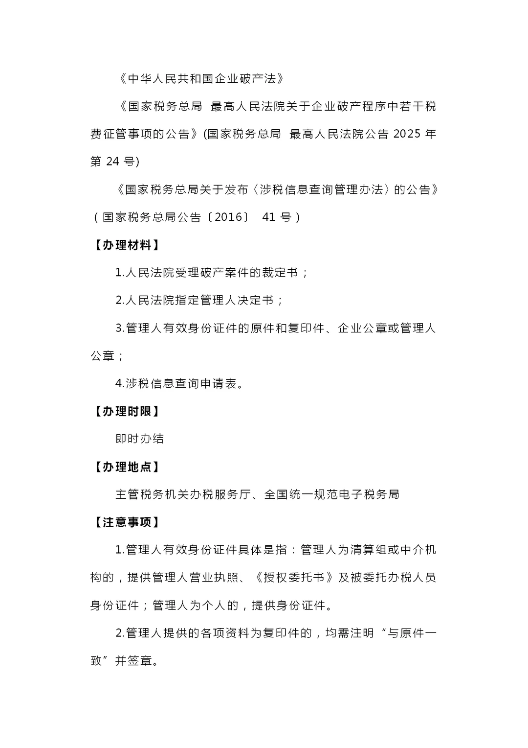 企业破产涉税事项办理操作指南