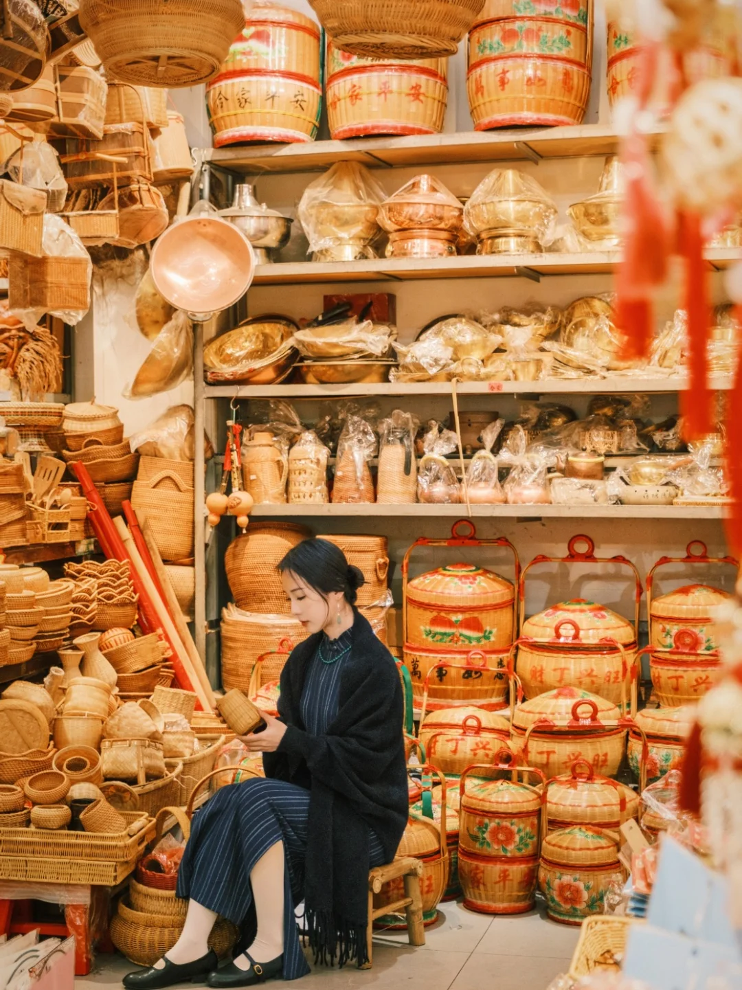 从广济楼进来不远的一家小店,门口的特色灯笼吸引了络绎不绝的人来打卡,白天去更好拍