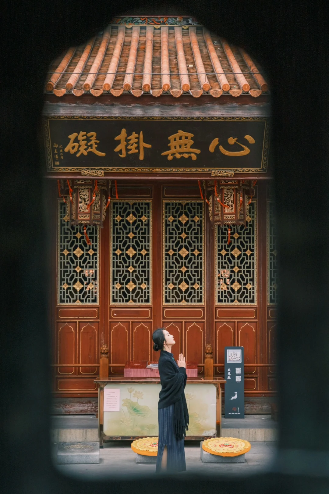 趁5点关门前进,人少,承包全场!甚至可以拍到空无一人的大殿外,晚上门口的油纸灯笼墙也很出片
