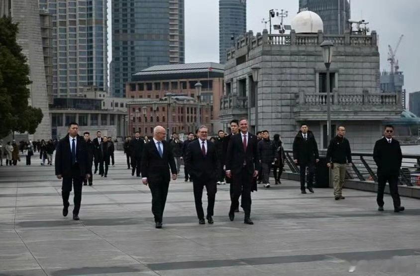 1月31日英国首相访华第四天逛外滩,双手插裤兜走在江边儿,感受上海美景!看来访华
