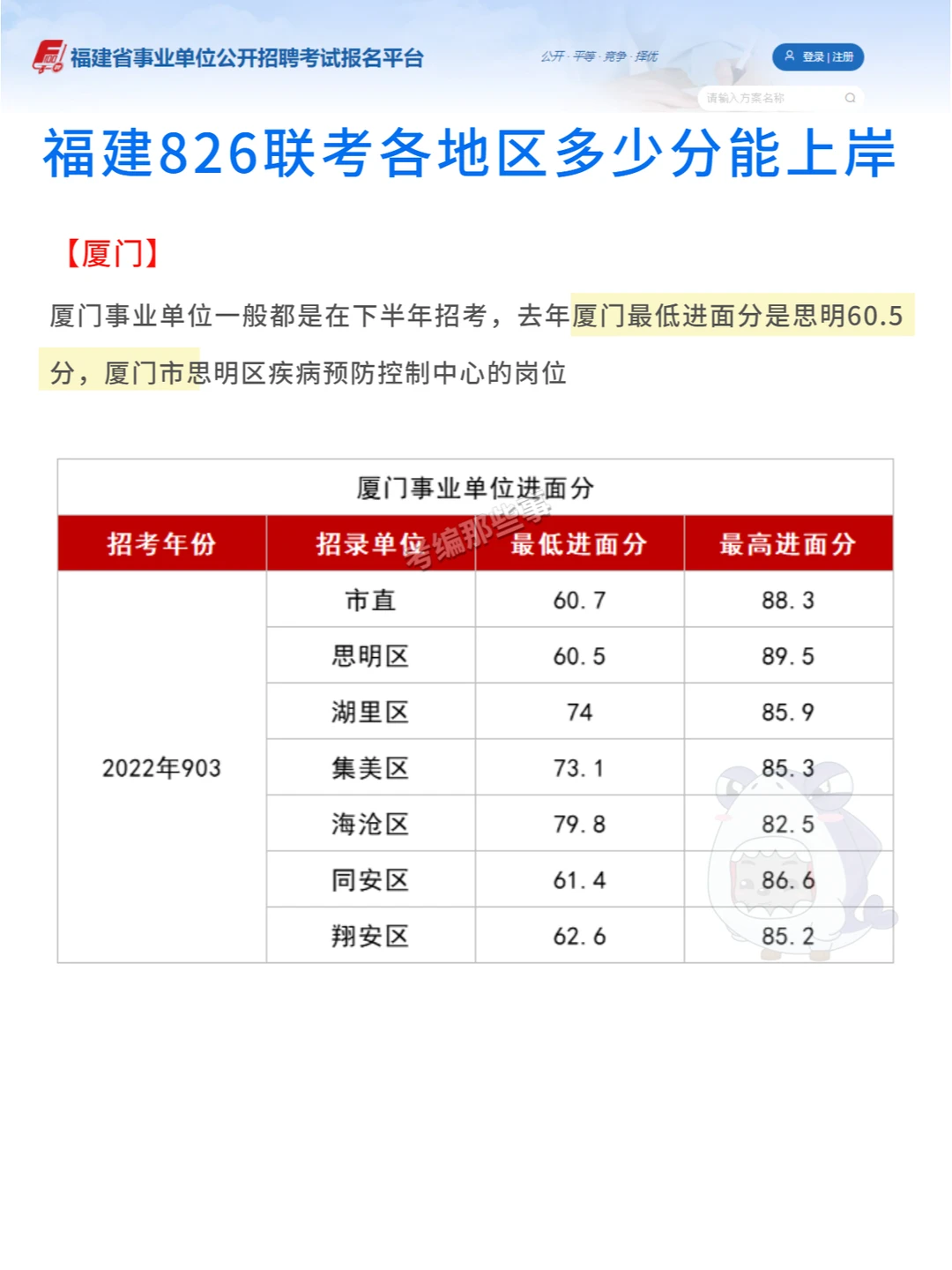 厦门事业单位一般都是在下半年,去年厦门zui低进面分是思明60.5分