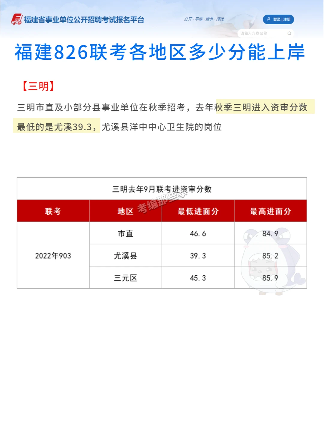 三明市直及小部分县事业单位在秋季,去年秋季三明进入资审分数zui低的是尤溪39.3,