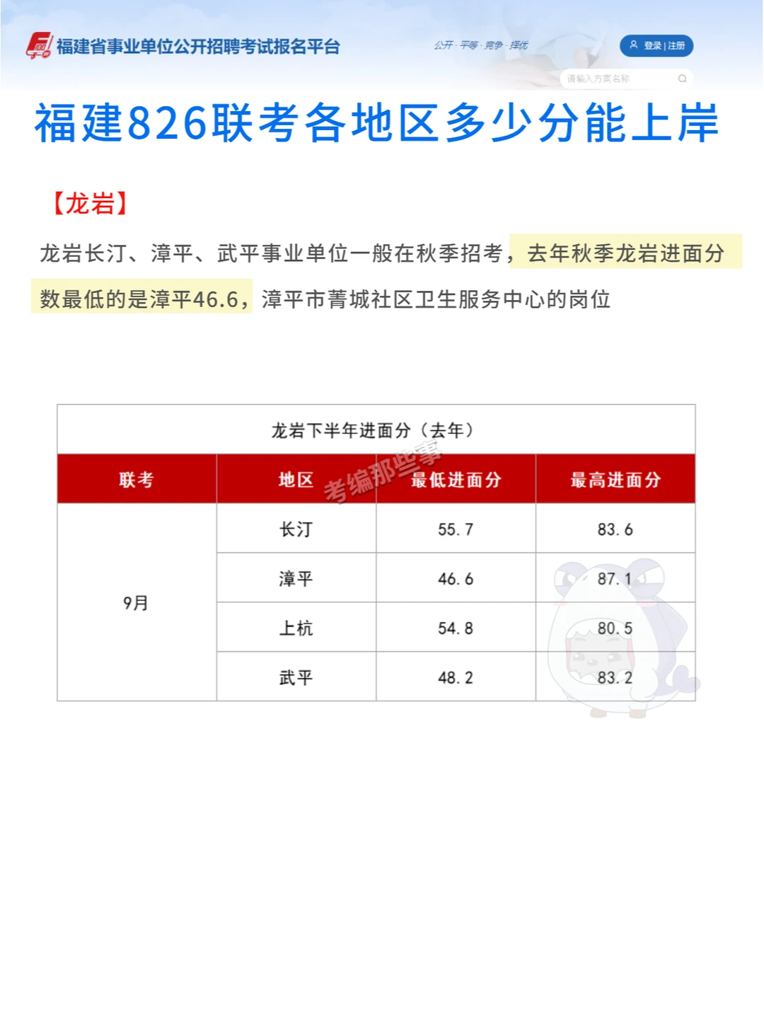 龙岩长汀、漳平、武平一般在秋季,去年秋季龙岩进面分数zui低的是漳平46.6,