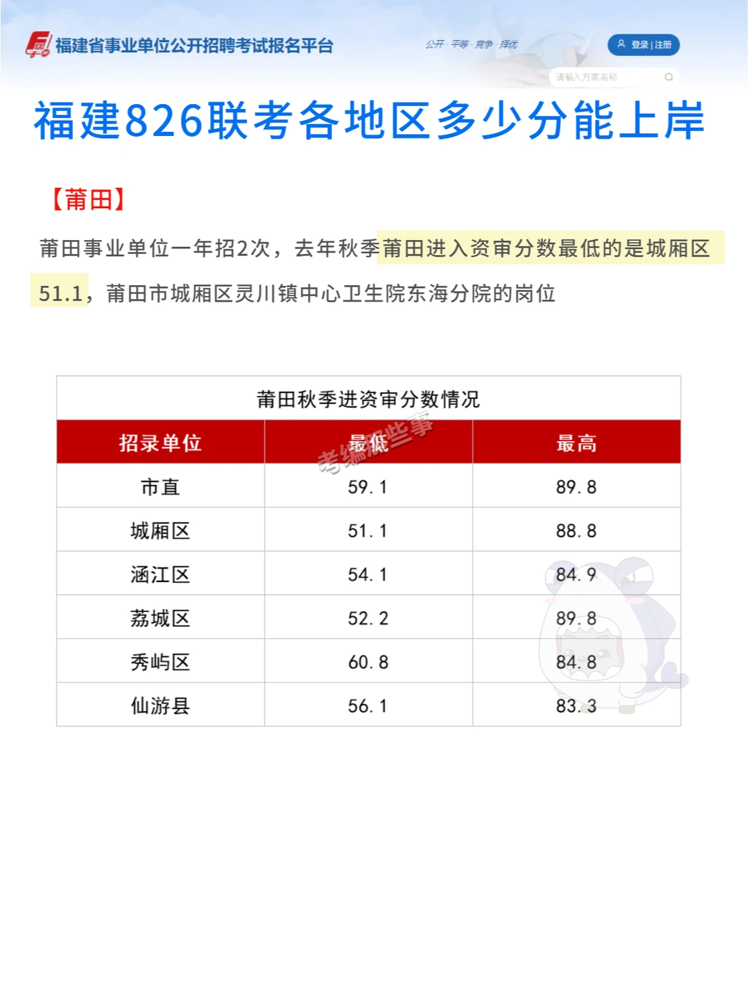 莆田事业单位一年2次,去年秋季莆田进入资审分数zui低的是城厢区51.1,