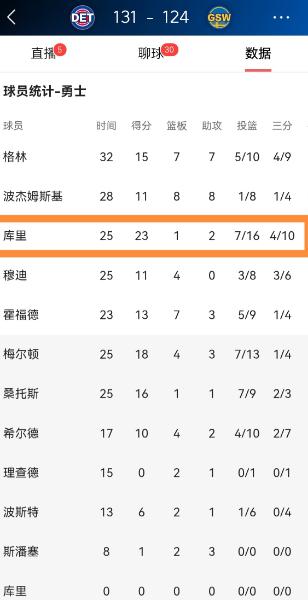 勇士当家球星库里真是太可惜了!今天勇士在主场以124:131不敌活塞,值得一提的是,本场比赛状态出色的库里由于受伤而提前退赛,不然的话库里一定能够带领球队赢下本场比赛。 北京时间1月31号的NBA常规赛,勇士在自己的主场没能守住胜利,最终124比131输给了活塞。 最让人揪心的不是输球本身,而是球队核心库里在比赛中途受伤,提前离场,好好的状态被突如其来的伤病打断,实在太可惜了。 这场球库里首发出战,只打了25分钟,手感其实相当在线。 投篮16中7,其中三分球10中4,罚球更是5罚全中,稳稳砍下23分,还有1个篮板和2次助攻。 能看出来他是想带着球队赢球的,每一次进攻都拼尽全力,可没想到意外还是发生了。 比赛进行到第三节末段,库里在一次突破打成“2+1”后,没有像往常一样庆祝,反而弯腰用手紧紧捂住右膝,回防的时候还反复低头查看膝盖,试着做屈伸动作测试发力。 看得出来他很疼,之后在一次死球阶段被替换下场,一瘸一拐地走向更衣室,再也没有回到赛场,勇士官方很快就宣布,库里因右膝不适,本场比赛不会回归。 其实库里的膝伤并不是突发情况,早在一周前的训练后,他就向训练师反映过右膝有些异样,之前还因为这个缺席过一场比赛,这次是带伤出战,最终伤情加重才被迫退赛。 赛后库里一直在更衣室冰敷膝盖,评估疼痛程度,而球队暂时还没决定要不要做核磁共振检查,一切都要等他第二天起床后的状态来定。 再说说这场比赛的过程,一开始双方手感都不差,勇士先拿到领先,但活塞很快就调整过来,首节结束就以45比37领先8分,第二节更是把分差拉开到13分。 到了第三节,活塞一度把优势扩大到20分,勇士好不容易打出一波13比2的攻击波追近比分,可库里的伤退,直接打乱了球队的节奏。 第四节没有库里的勇士,其实打得很拼,一度把13分的分差追到只剩3分,眼看就要完成逆转,可波杰姆斯基的关键三分没能命中,后续的犯规战术也没能奏效,最终还是没能翻盘。 反观活塞,坎宁安拿下29分11助攻,杜伦也有21分13篮板的两双表现,全队多点开花,稳稳守住了胜局。 不得不说,库里对勇士的重要性不言而喻。 这场球勇士虽然有8名球员得分上双,输得不算难看,但比起输球,库里的健康更让人担心。 如果他需要长时间休战,勇士的进攻体系很难运转,后续的比赛想赢下来只会更难;可如果强行带伤出战,又怕伤情进一步恶化,得不偿失。 不管怎么说,还是希望库里能好好休息,积极治疗,早日康复重返赛场。毕竟他的比赛,看一场少一场。 以上都是个人观点,对此您有什么不同的看法,可以在评论区留言讨论!!!