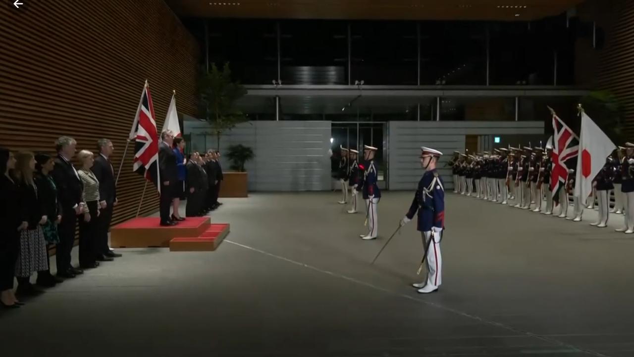 英国首相斯塔默抵达日本,高市早苗显得很拘束。 1月31日,英国首相斯塔默抵达日本,日本首相高市早苗举行了欢迎仪式,整个过程看起非常小气,体现了“小”日本的特征。 高市早苗应该是见过大场面的人,英国首相和日本首相,都是同一级别,背后有英王和倭王,但是,高市看起却很拘束。 两人的舞台,太小气了,就两个人能站,地毯也就这个两步梯有,狭小的、黑黢黢的工厂内举行欢迎仪式,像是在做贼一样,偷偷摸摸的样子。 高市穿着蓝色上衣,黑色短裙,为了显示自己是主人,一直主动引领斯塔默不要走错了。 整个引领,两人应该没有交流,斯塔默看高市的动作就行了,因为没有翻译在身边,或者说高市说英文,与斯塔默沟通,如果斯塔默说日语,应该不行。 很明显,在欢迎的仪式上,斯塔默没有笑脸,表情很沉重,看来这一次,双方也合作不了什么。