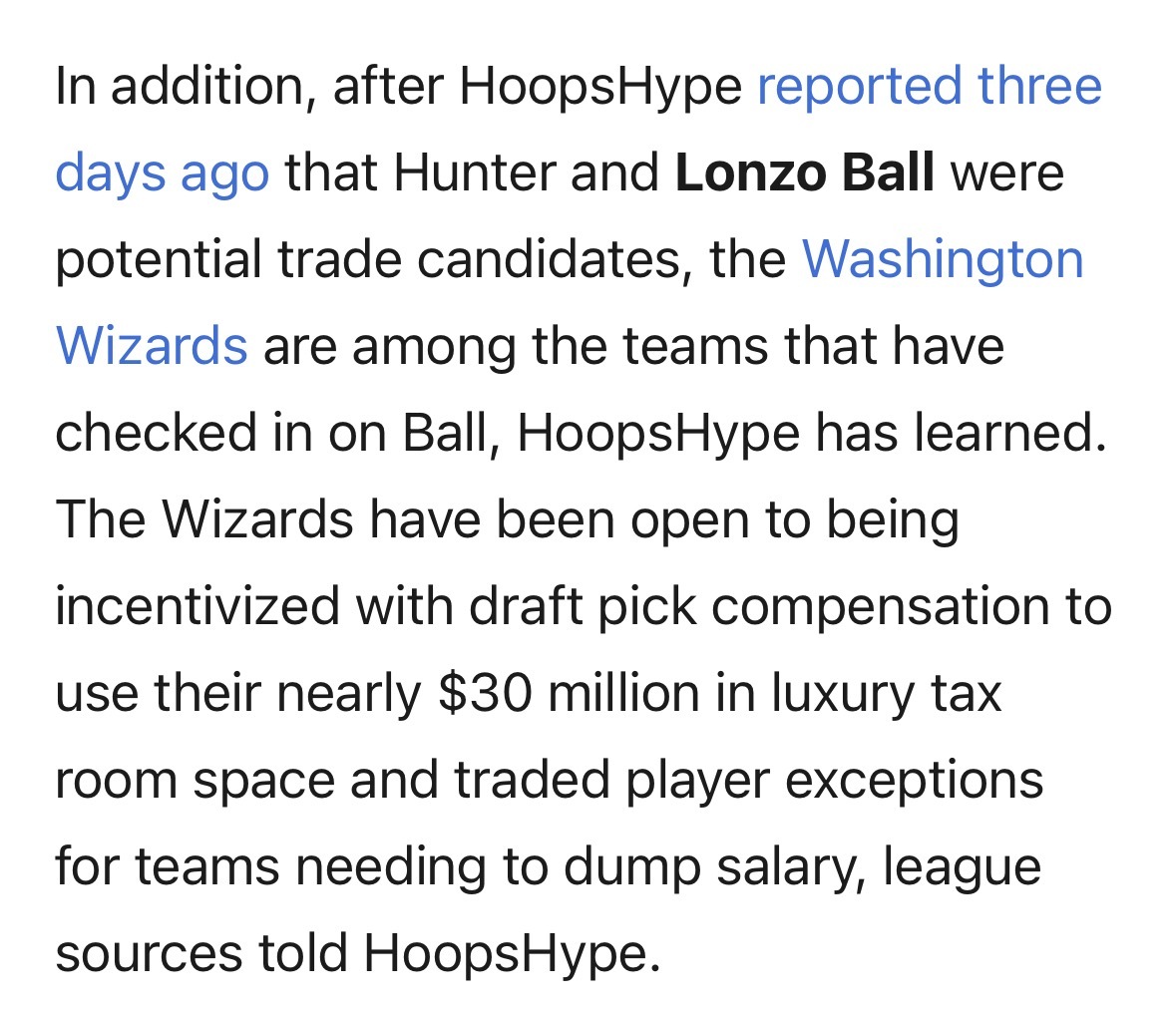 Scotto:奇才已就鲍尔向骑士询价,成为有意球队之一。联盟消息源透露,奇才手握近3000万美元奢侈税空间及交易球员特例,愿意为有薪资清理需求的球队提供帮助,条件是需获得选秀权作为补偿。
