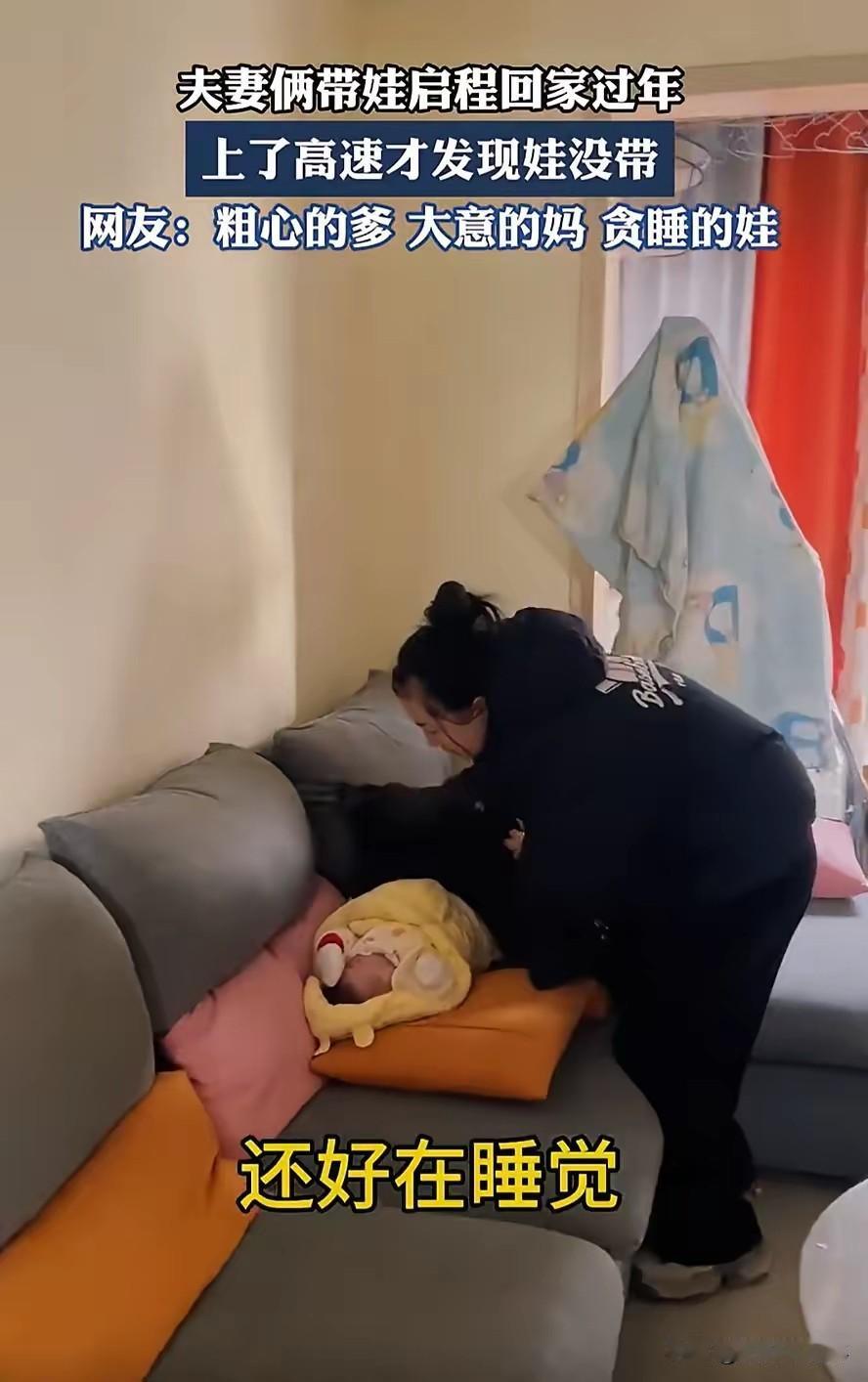 这心也是够大的!湖北,一对夫妻准备带娃回家过年,谁知车子都上高速了,两人才反应过来车上少了个人,宝宝还在沙发上躺着呢,妻子甚至慌忙中提出在高速上掉头,网友:喝忘崽牛奶了吧! 两人前一晚收拾行李到凌晨,大包小包堆了半车。出发时天还没亮,丈夫发动车子就往高速口冲,妻子坐在副驾补觉。开了二十多公里,丈夫随口问了句“娃没闹吧”,妻子愣了两秒,才发现后座的安全座椅是空的。 两人瞬间清醒。妻子慌得拍大腿,说“赶紧掉头回去”,丈夫盯着前方车流直摇头。高速上禁止掉头,硬来要扣12分,还可能引发事故。最后他们只能继续往前开,到下一个出口再绕路,折腾一个多小时才回到家。 推开家门,客厅沙发上,宝宝裹着黄色睡袋睡得正香,嘴角还挂着口水。夫妻俩又气又笑,赶紧把孩子抱起来检查,确认没冻着、没醒过,悬着的心才放下。 这段视频发到网上,评论区直接笑翻。有人调侃“这爸妈是急着回去过年,忘了带年娃”,也有人骂他们心大,万一宝宝醒了摔下来或者被锁在家里,后果不堪设想。 去年刷到过类似新闻。河南一对夫妻赶春运,把孩子落在服务区,开了一百多公里才发现。孩子在服务区哭着找爸妈,幸好被工作人员发现,没出意外。 带娃出门,最怕的就是这种“低级失误”。不是粗心,是大人脑子里只想着赶路、抢时间,把最该重视的孩子给忘了。高速上掉头的想法更危险,一时冲动可能酿成车毁人亡的悲剧。 过年回家是团圆的事,安全才是第一位。出发前花三分钟清点人数,比什么都重要。别让团圆变成惊魂一刻。 各位读者你们怎么看?欢迎在评论区讨论。