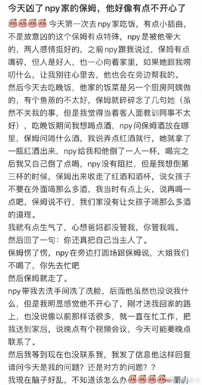 今天凶了npy家的保姆,他好像有点不开心了