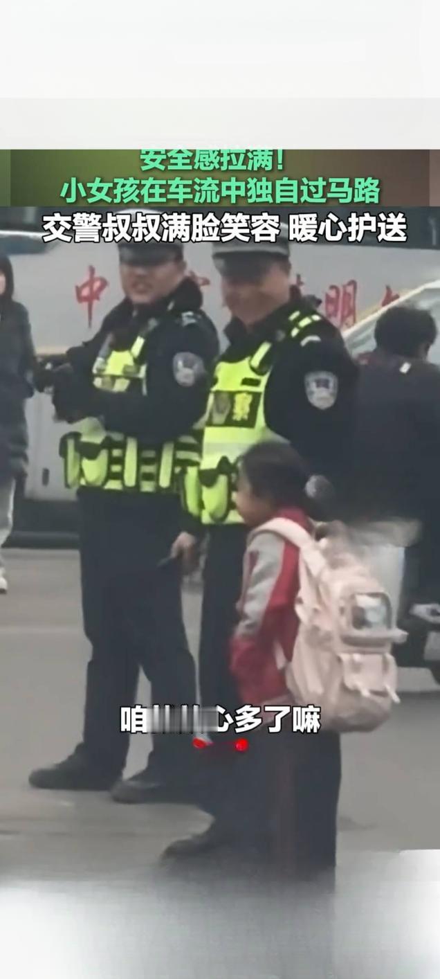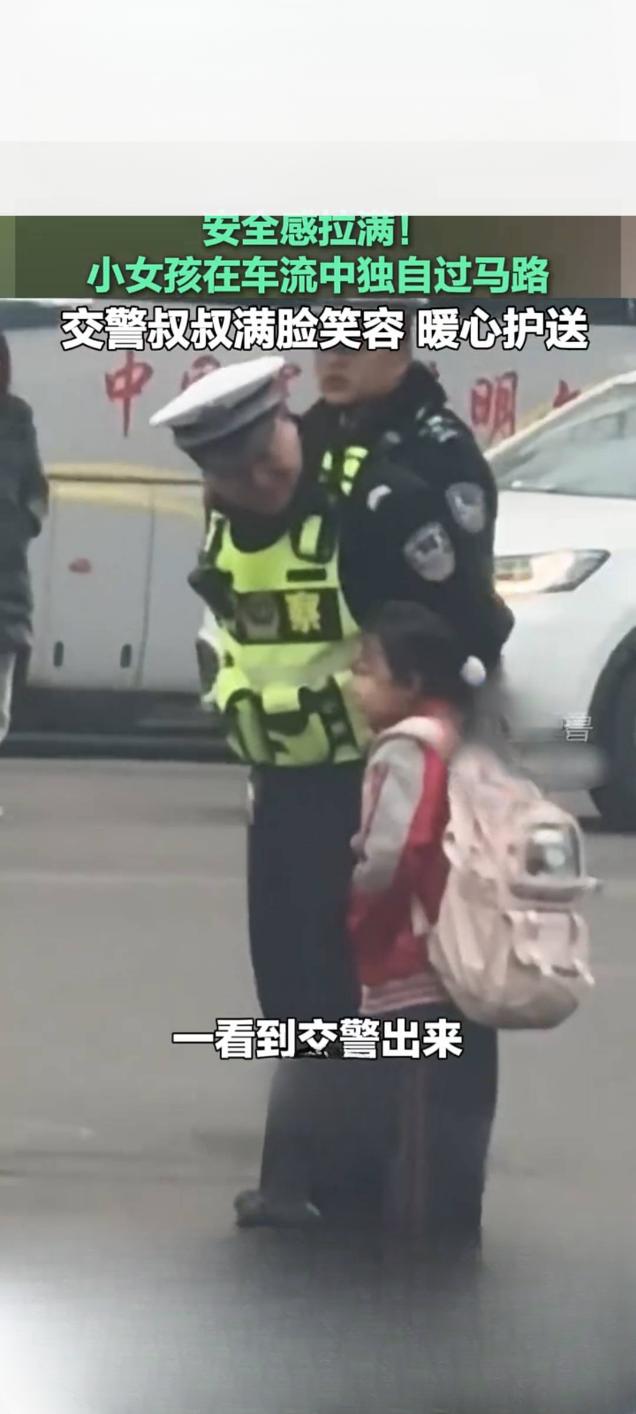 车流中的暖心守护!山西介休交警护送小女孩过马路获赞 1月31日,山西介休一段交警护送小女孩独自过马路的短视频在快手平台暖心走红,截至目前播放量已达6476次,网友纷纷留言“安全感拉满”。 视频中,正值交通流量较大的时段,马路上车辆往来不息。一名年幼的小女孩背着书包,独自站在路边,面对川流不息的车流面露犹豫,迟迟未能迈步。正在附近执勤的交警发现这一情况后,立即微笑着走上前,温柔地示意小女孩稍作等候。随后,交警转身面向来车方向,做出停车让行的手势,待车辆有序停下后,他始终保持着温和的笑容,陪护在小女孩身旁,小心翼翼地引导她穿过斑马线。 整个过程中,交警耐心细致的举动不仅让小女孩安全通过马路,也温暖了过往司机和广大网友。有网友评论:“交警叔叔的笑容太治愈了,这就是冬日里最暖的守护”“细节见真情,平凡岗位上的暖心举动最动人”。 据悉,介休交警始终坚守岗位,在维护交通秩序的同时,格外关注老人、儿童等特殊群体的出行安全。此次暖心护送不仅彰显了交警的责任与担当,更传递了社会正能量,为寒冷的冬日增添了浓浓暖意。带小孩过马路 交警温情放行 孩子过马路