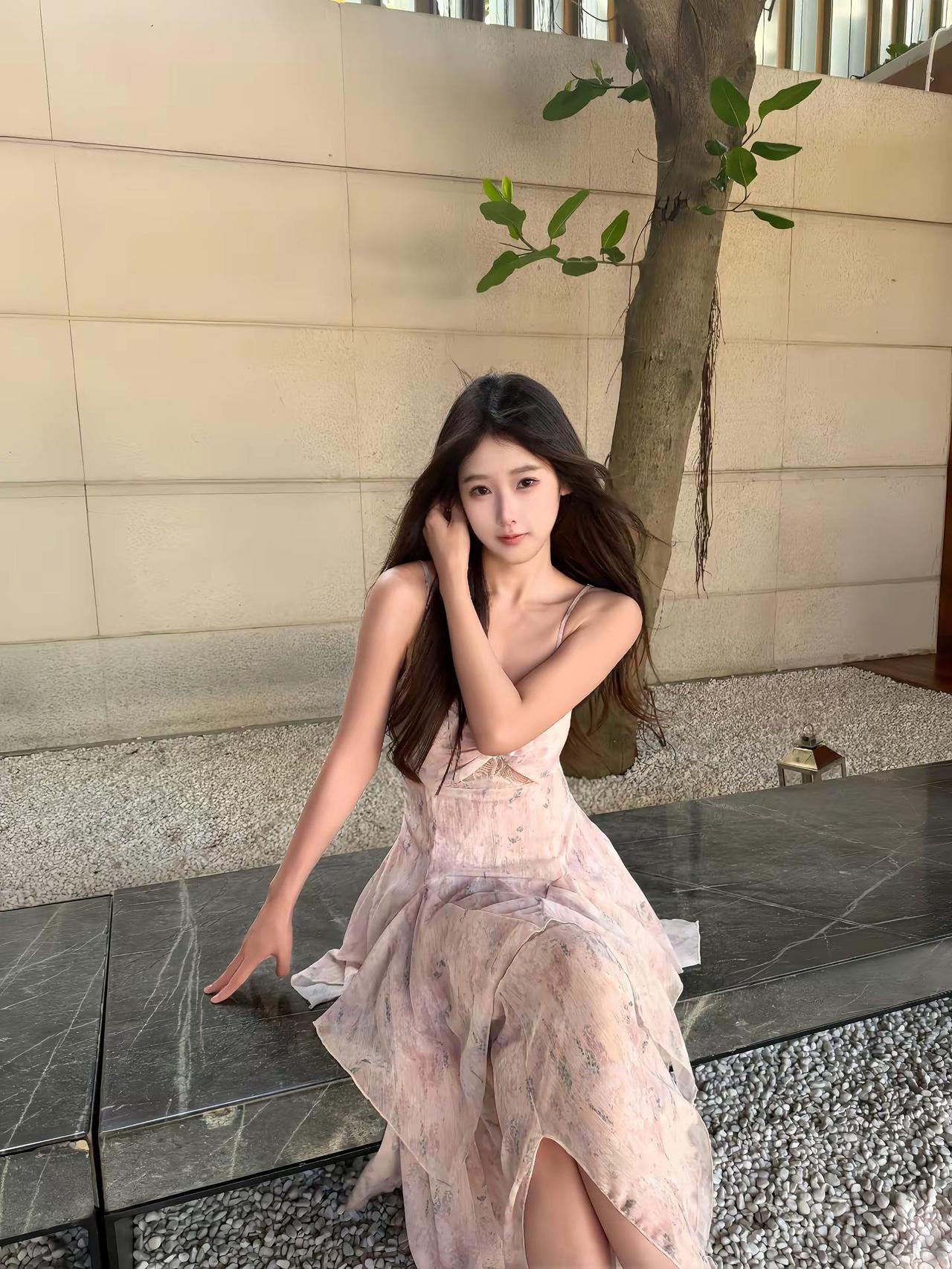 温柔甜美的粉色连衣裙,搭配精致耳环,散发优雅气质。