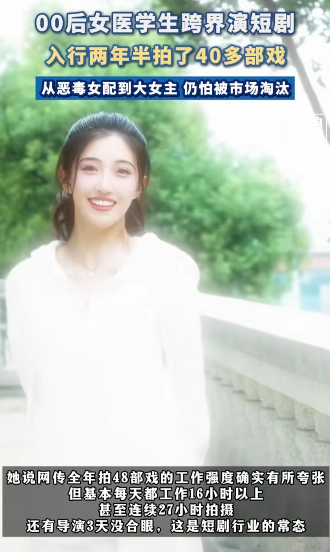 谁能想到,手握医学文凭的高材生,会放弃医院铁饭碗去拍短剧?00后女孩李安娜,本该穿着白大褂救死扶伤,却一头扎进了竞争残酷的演艺圈。 入行两年半,她拍了近50部短剧、上百条广告,基本每天工作16小时以上,最长连熬27小时没合眼。从被骂的“恶毒女配”到扛起戏份的“大女主”,观众的差评她都当勋章存着,可即便拼到这份上,她仍天天怕被淘汰。 她没敢告诉多数亲友自己转行了,枕边还放着医学书,留着“拍不动就回医院”的后路。短剧行业的快节奏里,没人敢停下脚步,导演三天不合眼都是常态。 其实我们谁不是这样?为了热爱拼尽全力,一边焦虑不安一边咬牙坚持。愿每个为梦想奔跑的人,都能被生活温柔以待,所有付出都能换来想要的结果。