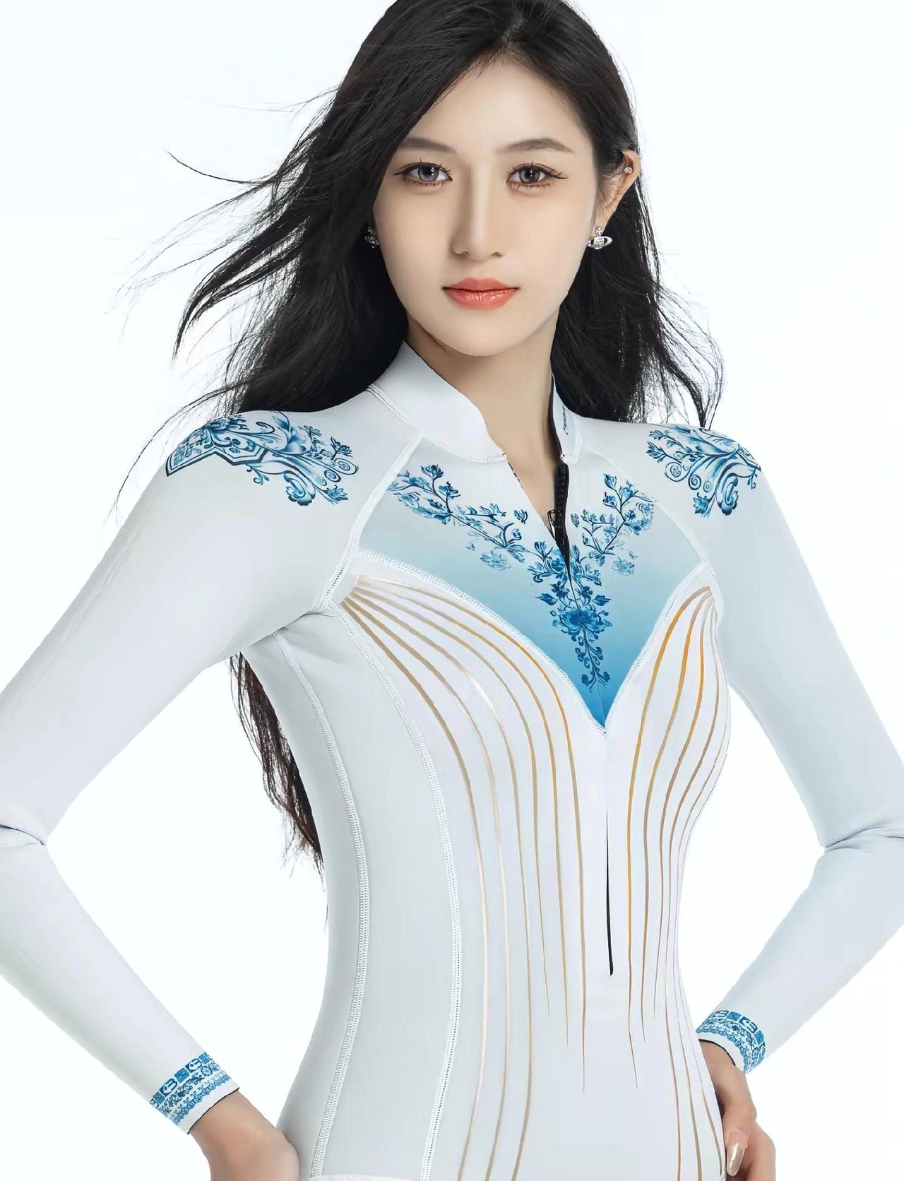 专业运动员模特的新款服装写真/优雅蓝白撞色连衣裙,尽显东方古典美!蓝白印花裙 蓝