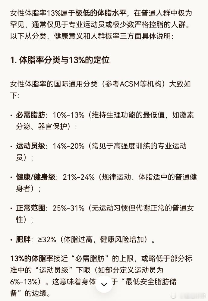 向涵之体脂率13%向涵之的体脂率 向涵之回复粉丝说自己体脂率是13%,果然女艺