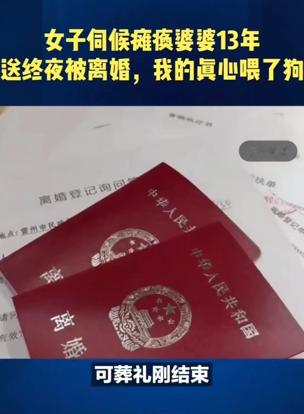 伺候瘫痪婆婆13年,刚去世就被提离婚:多少婚姻里藏着“免费保姆”的悲哀 13年,4745个日夜。一位山东女子用青春中最珍贵的时光,为瘫痪在床的婆婆擦洗身体、端屎端尿、精心照料,却换来丈夫在母亲离世后的冷酷离婚通知。那句“我可是吃了13年的苦啊!你就把我当免费保姆吗?”的哭诉,撕开了多少婚姻中隐形的付出与无情的价值低估。 这不是简单的家庭纠纷,而是一面照进无数家庭的镜子。当妻子用爱和责任支撑起整个家庭的重量时,她是否在丈夫眼中早已被贴上了“理所当然”的标签?婆婆在世时,她的付出是“孝心”;婆婆离世后,这份付出却被轻飘飘地遗忘,仿佛那13年的光阴只是保姆合同的有效期,合同结束,关系便该解除。 这种“卸磨杀驴”式的婚姻关系,揭露了一个残酷的现实:在一些人眼中,伴侣的付出是有条件的、有期限的,而非基于爱与尊重的不离不弃。13年的朝夕相伴,本应是夫妻情谊最深沉的积淀,却在一方不再“有用”后,变成了可以轻易割舍的负担。这不仅是人性的凉薄,更是对婚姻本质的扭曲。 让我们想象一下这13年的日日夜夜:清晨的第一缕阳光照进房间时,女子已经开始准备婆婆的洗漱;深夜家人都已入睡,她可能还在清洗衣物、准备第二天的饭菜。这份“看不见”的家务劳动,这种“理所当然”的情感付出,在离婚两个字面前,显得如此苍白无力。 网友们看到这个消息后,评论几乎一边倒:“这男人太狠心了”“13年的情分就这么不值钱吗”“这是把妻子当成了什么?”这些声音背后,是大众对这种不对等婚姻关系的集体愤怒与反思。 这个故事的核心,是婚姻中的价值认可问题。在一个健康的婚姻关系里,双方的价值不仅体现在经济贡献上,更体现在情感支持、家庭照料这些“隐形付出”中。然而,现实中,这些往往被忽视、被低估。当一方长期承担着照料老人、料理家务的重担,这些付出如果没有得到对方的尊重与感激,婚姻的天平便会倾斜,关系便会变质。 其实,这位女子的遭遇并非个例。在我们的社会中,有多少女性在家庭中默默付出,却从未得到应有的认可?她们可能是全职妈妈,可能是兼顾工作和家庭的职业女性,可能是像这位女子一样长期照料患病长辈的孝顺媳妇。她们的共同点是:付出被视为理所当然,价值被严重低估。 这起事件也让我们思考婚姻的本质究竟是什么?是一纸契约?是利益交换?还是两个灵魂基于爱与责任的相互扶持?如果婚姻变成了一方对另一方价值的不断榨取,那么当“使用价值”耗尽时,关系自然就会破裂。 真正的婚姻,应当看见并珍视彼此的全部付出。看见那些深夜里的守护,看见那些日复一日的操劳,看见那些不求回报的给予。看见,然后感恩,然后回馈,然后一起走过人生的每个季节——无论顺境还是逆境。 令人欣慰的是,法律的天平正在向这些“隐形付出”倾斜。越来越多的案例中,法院在判决离婚财产分割时,开始考虑家务劳动的价值、对家庭贡献的评估。这是一个积极的信号,它表明我们的社会正在逐渐认识到:爱和付出,应该有它应有的分量。 这起事件也给我们所有人一个提醒:在婚姻中,请务必看见对方的付出,尊重对方的劳动,感恩对方的陪伴。婚姻从来不是单方面的索取,而是双向的奔赴;不是利益的交换,而是生命的交融。 如果你是这位女子,你会怎么做?如果你身边有这样的故事,你会如何看待?婚姻中的付出与回报,究竟该如何衡量? 欢迎在评论区分享你的观点,让我们一起探讨现代婚姻中这些深刻而现实的问题。