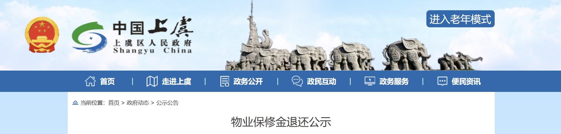 近日,绍兴上虞区人民政府发布一则《物业保修金退还公示》: