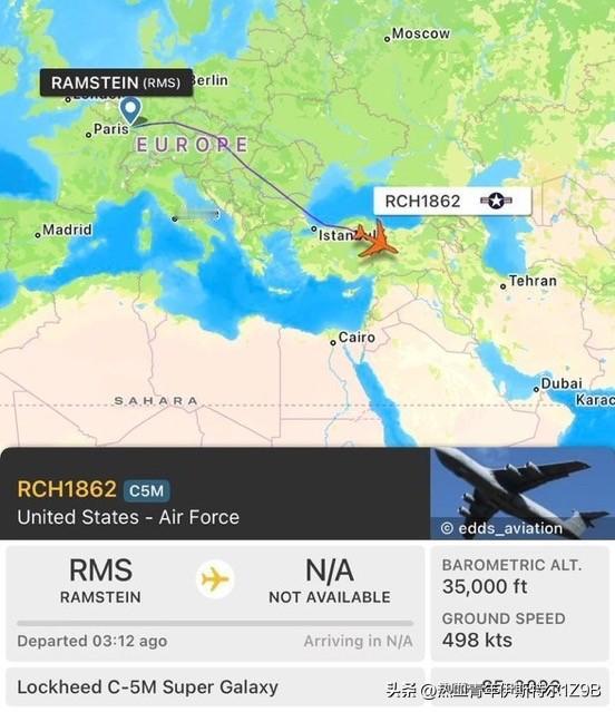 美国空军重型战略运输机C-5M“超级银河”目前正穿越土耳其领空,向东南方向飞往中东。该机于今天(周六)早些时候从德国拉姆施泰因空军基地起飞。这架飞机最初是从位于德克萨斯州胡德堡的罗伯特·格雷陆军机场起飞的,该机场是美国陆军第69防空炮兵旅的驻地,该旅负责操作“萨德”弹道导弹防御系统。美c17运输机