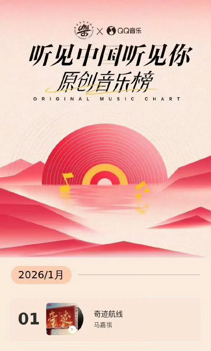 马嘉祺演唱的总台ost 《奇迹航线》获中国原创音乐排行榜1月榜首🎉恭喜歌手马嘉
