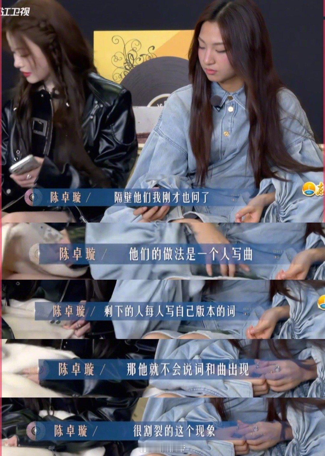 陈卓璇 音综界来了个心理委员 陈卓璇简直是音综界的“情绪定海神针”!小组作品被乐评人全盘否定,她不慌不乱,思路清晰得像“南宫问雅”——不钻牛角尖,只抓核心:有问题就改,有不足就补。还能淡定安抚队友:“没有那么大事。” 这份从容和领导力,真的稳得让人心安。