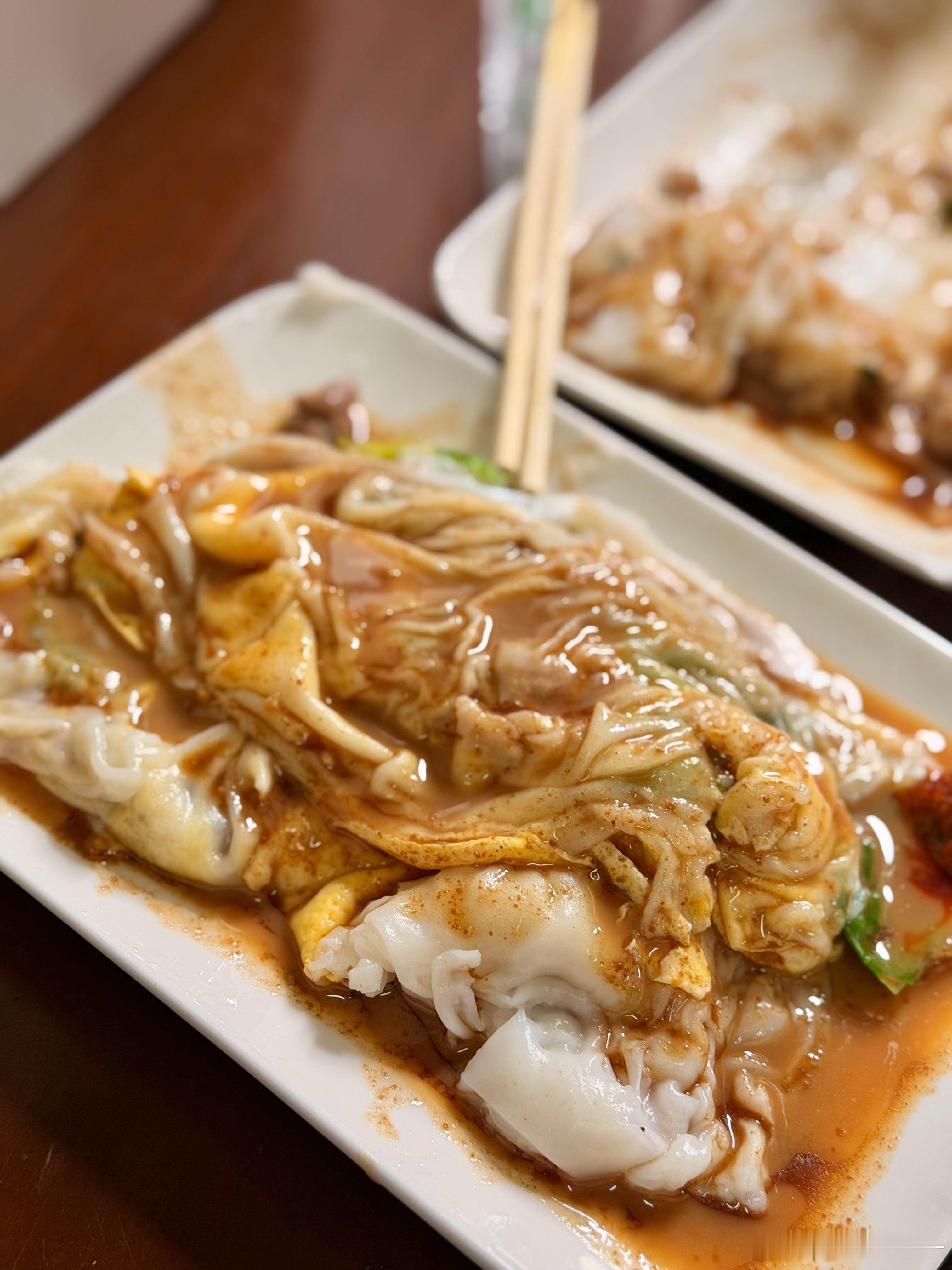 今天回广前在当地吃了次肠粉,竟然是沙茶花生酱,配料竹笋也很特别!潮汕和福建的饮食口味还挺接近的~ 潮州·西新市场