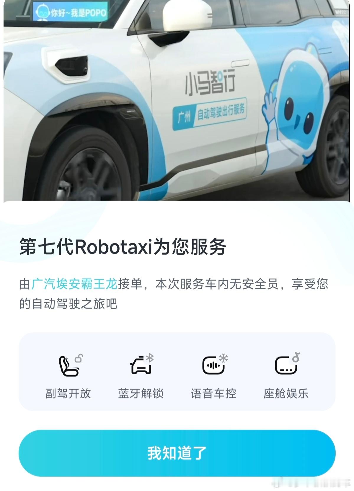 近日已经习惯了出门就搭小马智行的无人驾驶车,有广汽埃安霸王龙和广汽丰田赛那两款车,比起担心司机的风琴脚、怒路症和打瞌睡,无人驾驶车都是统一的风格,讲究一个真安心。现在还能选择顶灯和LED灯牌的不用款式,也是非常有个性,也一目了然就能找到自己得座驾。现在好像还有广州南站和机场的专线,就是费用还比较高,而且也没有预约功能。什么时候推出机场专线′预约功能? 广州