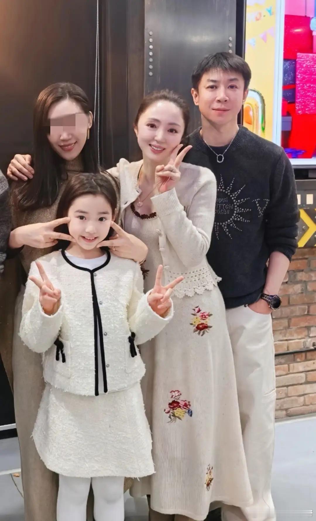 董璇母女给朵朵庆生,小酒窝穿小香风好精致,陈思诚站C位很和谐
