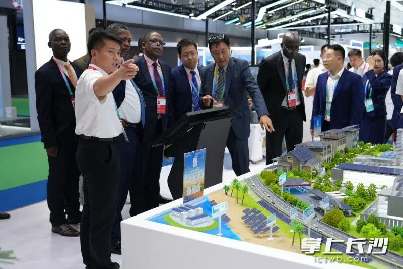 红太阳新能源相关工作人员向外国客商介绍微电网解决方案。长沙晚报通讯员王浩宇供图