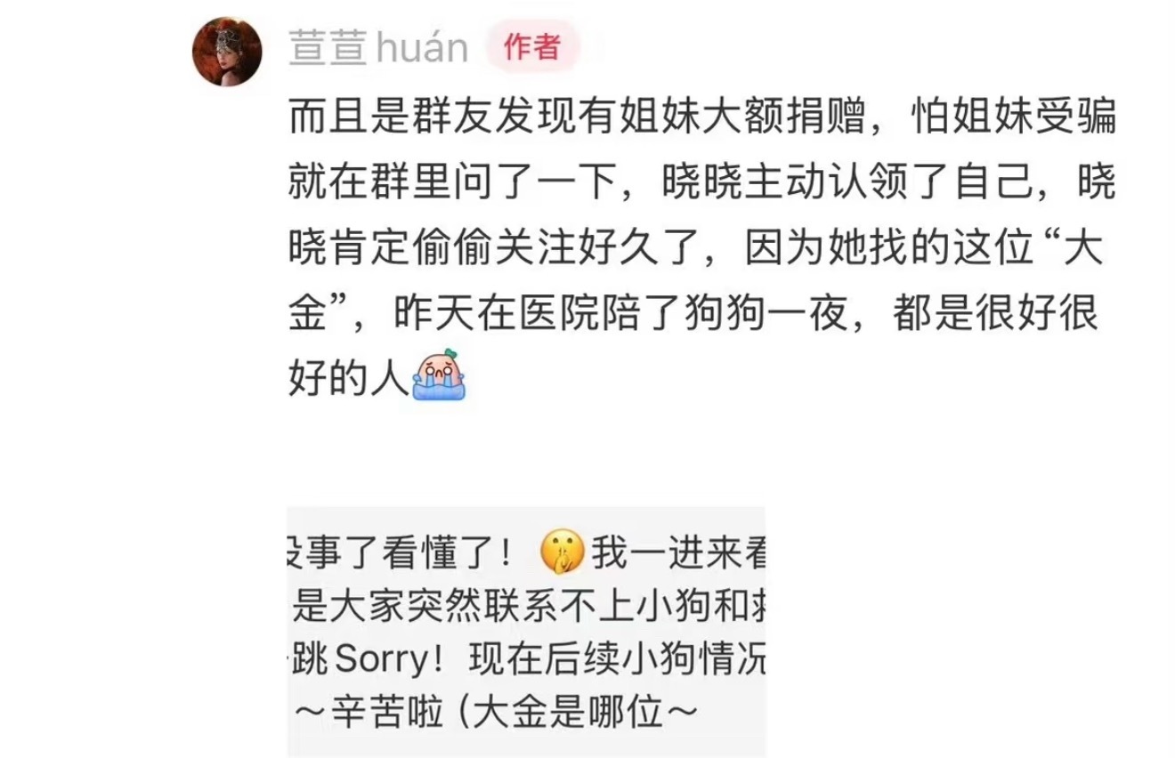卢昱晓在🍠群救助小狗噜噜晓是一个超级棒的小女孩是博主因为收到大额捐赠后在群里问