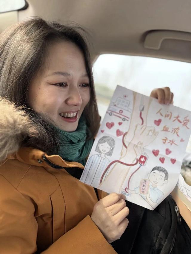 其中一份礼物,是她女儿用A4纸为捐献者画的画。封面是孩子手绘的红心和小花,用彩笔写着“感恩有您”“谢谢杨叔叔”,“因为孩子知道,没有杨叔叔,就没有妈妈了,就没有我们家了。”她说。
