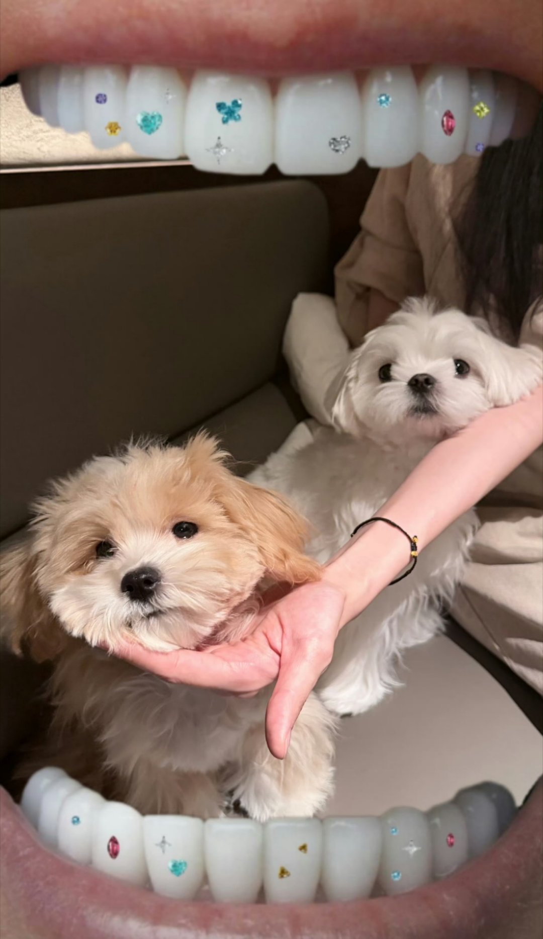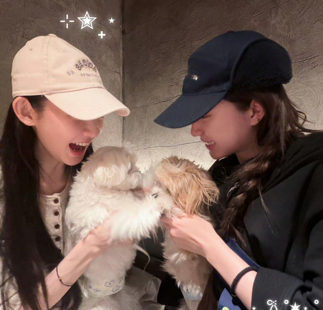 张艺凡这样看两只小狗狗咋长得跟双胞胎一样