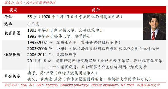 >背景资料:凯文·沃什1970年4月13日生于美国纽约州奥尔巴尼,共和党籍,毕业于斯坦福大学(文学学士)和哈佛大学(法学博士),曾担任过摩根士丹利高管、小布什总统经济政策特别助理兼国家经济委员会执行秘书、美联储理事,现任胡佛研究所访问学者、斯坦福商学院讲师、国会预算办公室经济顾问小组成员等职位,是为数不多集金融机构、政府部门、美联储任职履历于一身的官员,可以视作是典型的共和党“建制派”精英。此外值得关注的是,沃什的岳父罗纳德·兰黛是雅诗兰黛集团的所有者,且是特朗普的大学同学和好友,收购格陵兰岛的战略正是罗纳德·兰黛向特朗普提出的,这或许是沃什最终能获得提名的一个重要原因。
