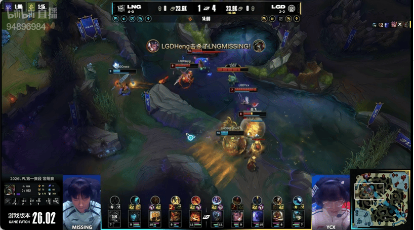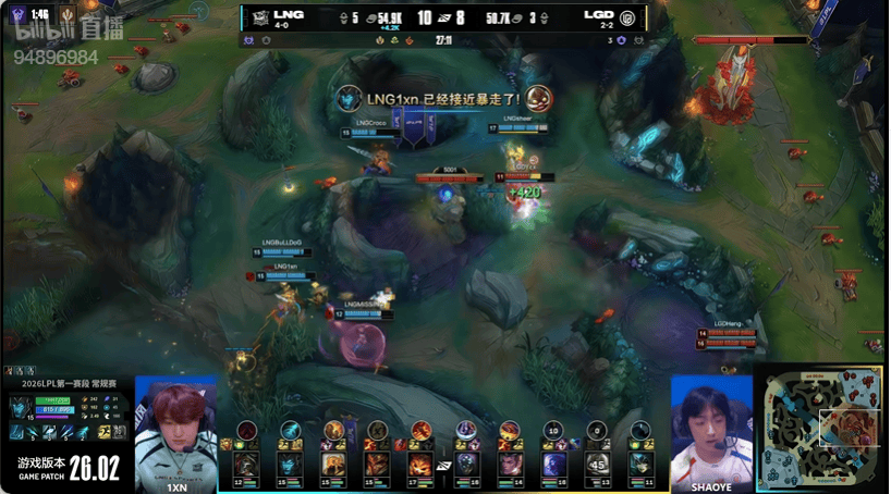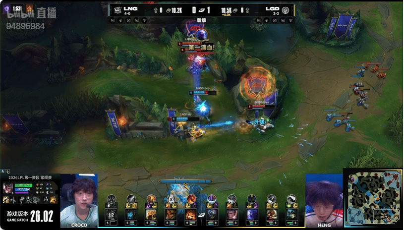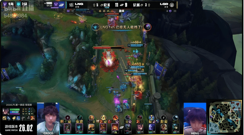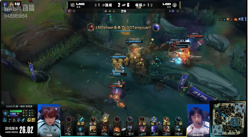14分钟:LGD先行集结集火击杀LNG野辅打出零换二