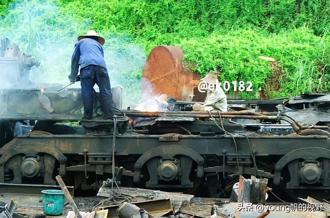 有网友分享出了当年三茂铁路使用的老东风内燃机车拆解的场景记录照片。三茂铁路是九十年代修建的一条广东省内的地方铁路。它与广三铁路、河茂铁路相接,成为了今天的广茂铁路。早年三茂铁路曾使用了前进型蒸汽机车,后来更换了东风1型内燃机车,再到今天的东风4型和和谐内型。照片中的老东风机车是1967年大连机车厂的产品,不知道是从哪里转配至三水机务段。很遗憾当年的这些机车没能保留一台下来,送进广东铁博做展览,而是早早成为一堆废铁了。