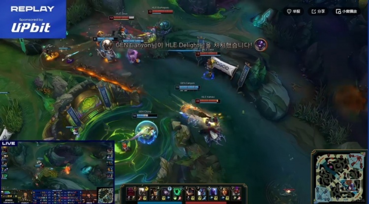 [17:40]Kanavi巨魔中路被开但是自己吸了一口没死!HLE反打强杀掉了GEN下路组,但是追击过深,Gumayusi希维尔抗塔抗没了啊!残局Canyon潘森大招找到了Zeus兰博完成单杀!最终竟然是2换2的局面吗!