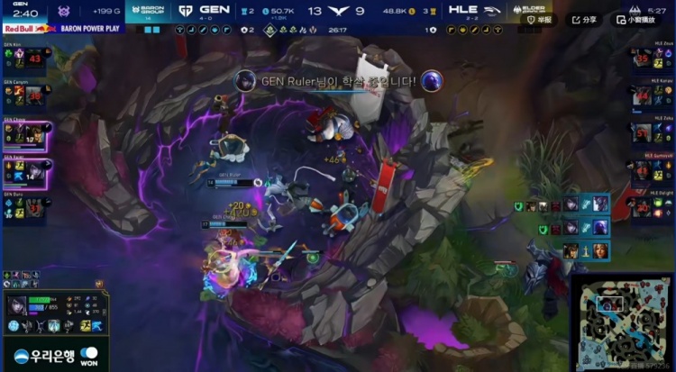 第二局:HLE放假还差一局!关键团战GEN上野撑局势GEN次局再胜HLE