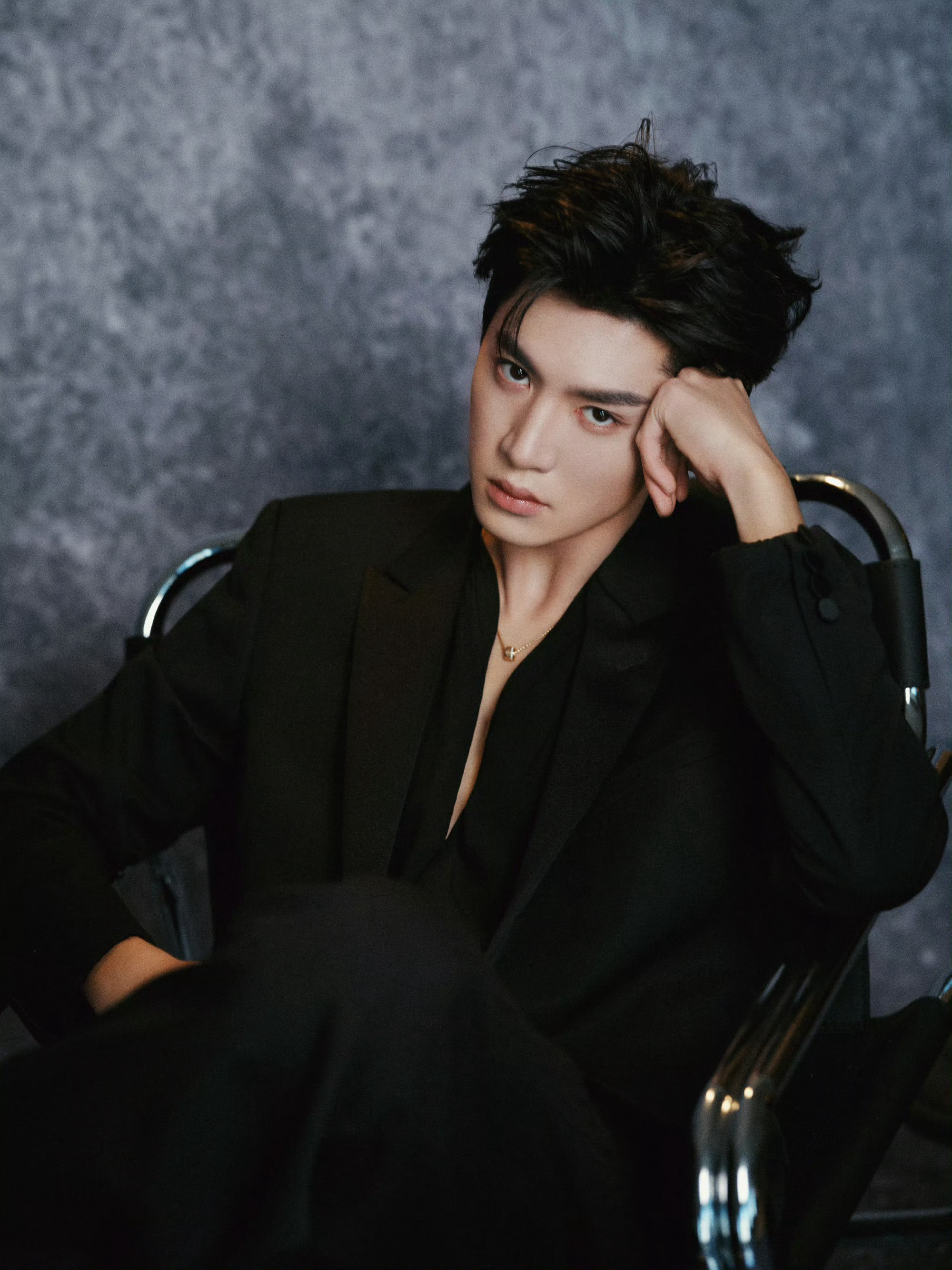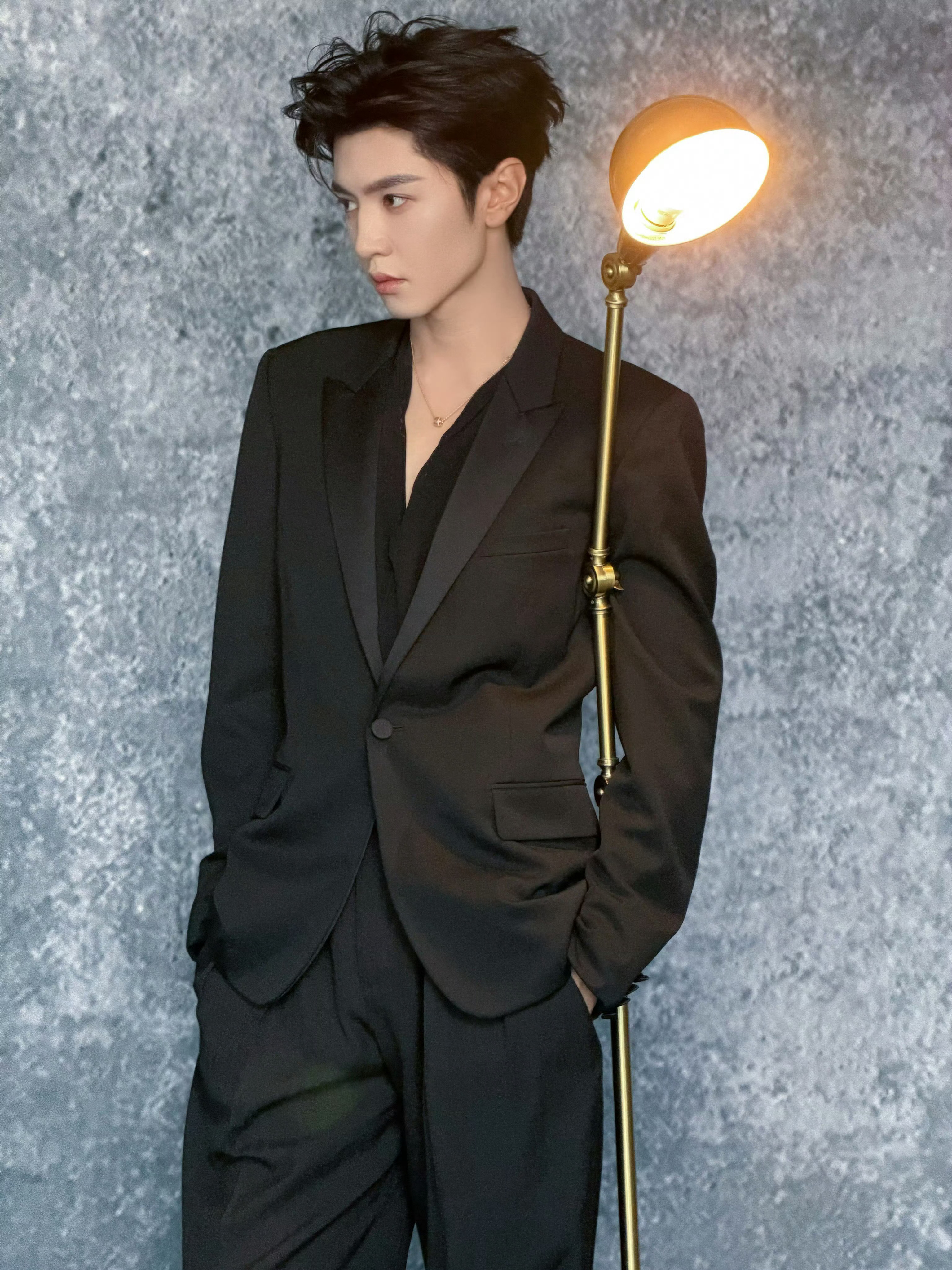 陈哲远 in Saint Laurent 📷🖤 今日品牌活动造型图集,All Black西服套装,Piaget珠宝点缀,简约清俊的绅士男爵~ ✨🖤 时尚灵感解读 陈哲远 吸血鬼男爵