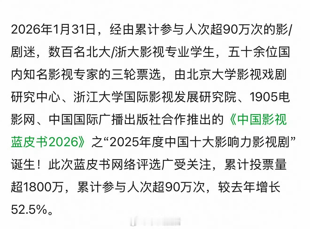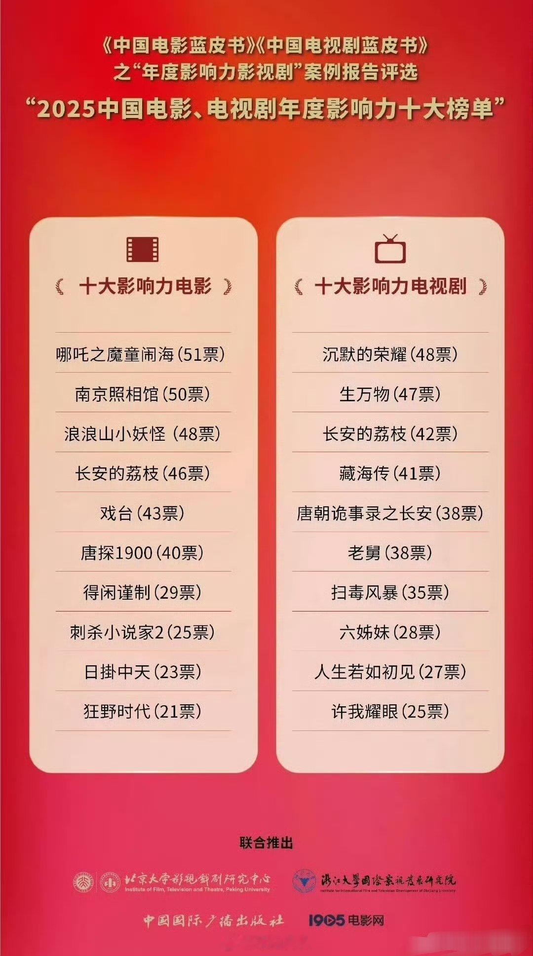 2025由北大、浙大主办的《中国电影蓝皮书》《中国电视剧蓝皮书》十大影响力榜单 🈶 看看你喜欢的电影电视剧入围了吗?