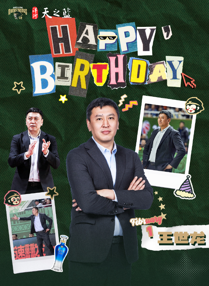 南京男篮社媒分享生日海报:祝王指导生日快乐!