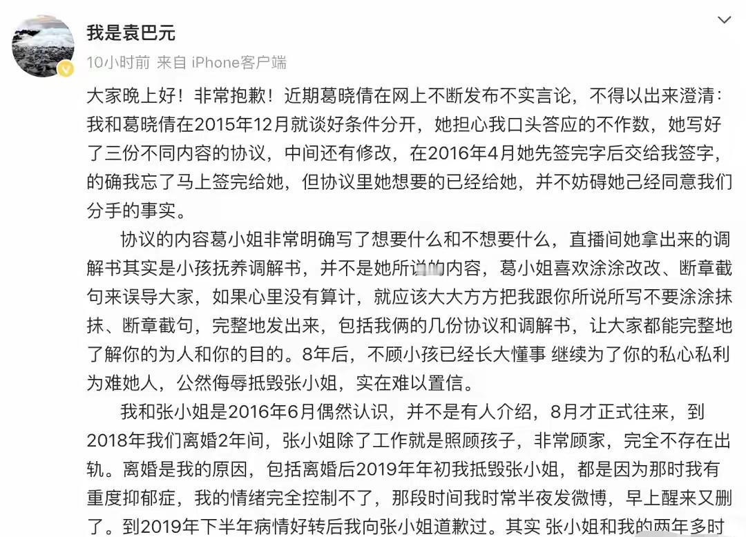 前一秒还在和张雨绮互撕,后一秒,袁巴元突然调转枪口,把一个藏在幕后的女人——葛晓倩,推出来当靶子。 一个经典战术。 围魏救赵。 他指控她,贪婪,不配当妈。 一套组合拳,试图把舆论的脏水,全泼到这个“前任”身上。 转移火力。 金蝉脱壳。 他以为观众会跟着他的指挥棒,去看一场新的、更狗血的戏。 但他算错了。 葛晓倩,不是软柿子。 她没上头,没互撕。 就那么轻飘飘几句话,点破了袁巴元的财务窟窿,顺便,还留下一句意味深长的话外音:关于你的事,我可知道得不少。 一招“点穴”,比一万句哭诉都有用。 她没扔出任何“炸弹”,但所有人都闻到了火药味。 这才是高手过招,不动声色,却已亮出底牌。 舆论的硝烟,总会散尽。 镁光灯,也会关掉。 但孩子,是他们之间那根扯不断、烧不掉的,最原始的连接。 这场戏,其实没有赢家。 只有两个被绑在同一根绳上的父母,和那个永远在等他们回家的孩子。