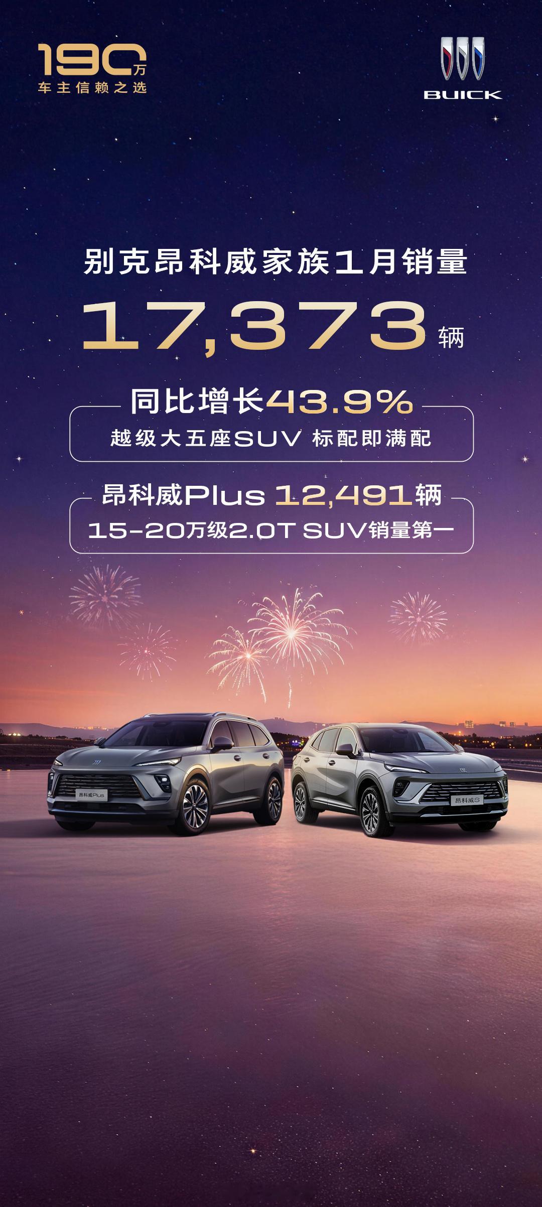 别克喜迎开门红别克 别克品牌1月销量39,876辆 同比增长17.5%🚗GL8家族10,036辆,同比增长13.4%。至境世家稳居40万+豪华MPV冠军🚗昂科威家族 17,373辆,同比增长43.9%。昂科威Plus获15-20万级2.0T SUV销量第一🚗 君越君威 10,507辆,同比增长37.6%