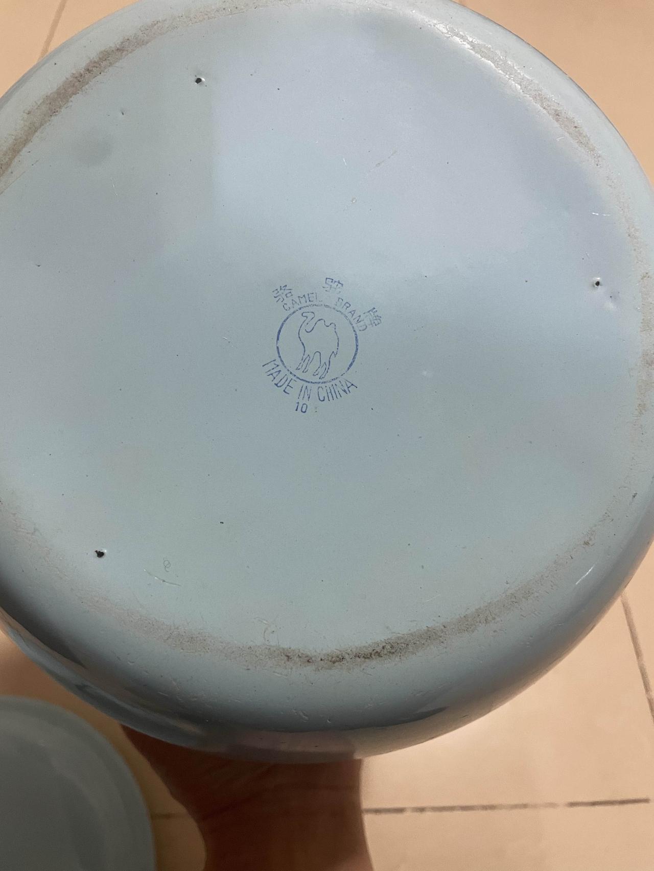 这只提耳罐,从我小时候起便存于家中。如今,我已步入花甲之年。它一直静置于我家的柜子上,默默见证着我家几十年来的变迁。 小时候,家境贫寒,这提耳罐用来盛装极为珍贵的菜油。母亲每次打开罐盖时,我总会凑上前去,眼巴巴看着她从罐里挖出一小勺菜油。就这一小勺菜油,便是供家里六口人炒菜用的。要是舀多了,到月底就没油炒菜啦!后来生活条件好了,桶装菜籽油出现,这提耳罐便成了闲置之物。 多年过去,它身上的釉彩基本没有剥落,罐身仅仅出现了细微裂纹。但它宛如一位老友,始终默默陪伴着我。轻抚它时,小时候一家人围坐吃饭的情景便会浮现眼前。它承载着我的童年记忆,也见证了岁月的更迭,是我最为珍视的老物件之一。 今天打扫卫生,突然发现,罐底有一个不是很清晰的“骆驼”商标,上网查询,才知道,这还是六七十年代驰名中外的出口创汇产品呢!这瓦蓝瓦蓝的颜色,好似“雨过天晴云破处”的晴空,让我的思绪,久久不能平复~