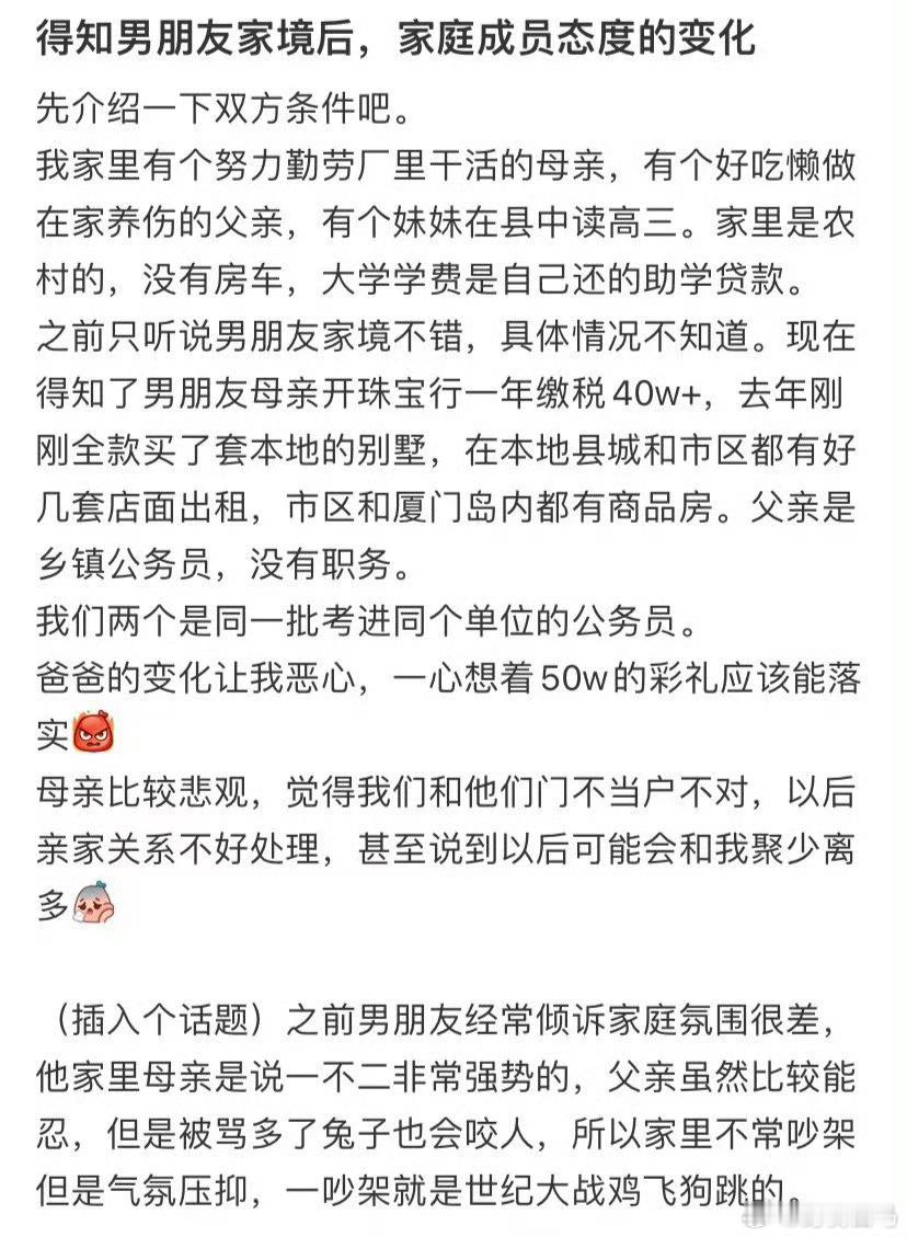 得知男朋友家境后,家庭成员态度的变化以年为单位的爱太稀缺了
