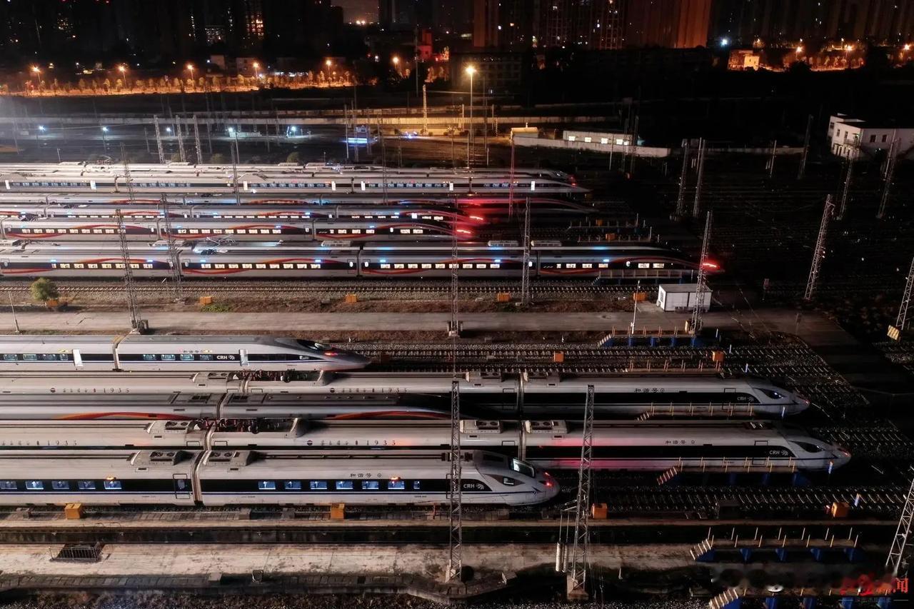 你见过“陆地航母”吗?春运守护神——动车运用所。春运就在眼前,这些巨大的“航母”又在夜色中活了过来。 那场面,真叫一个震撼。一列列完成“体检”的动车组,像待命的战机一样整齐列队,灯光下泛着金属光泽。这里的工程师们正为它们做最后检查,从车轮到座椅,每一处细节都关乎着你我旅途的安全与舒适。它们静默伫立,却仿佛能听见即将响起的汽笛,感受到车厢里即将装满的归心。 这背后,是许多人想象不到的精密调度。列车跑完一天后,连夜回到这里“充电”、检修、清洗,第二天天不亮又奔赴各个车站,迎接新一天的人潮。整个春运40天,预计有超过5亿人次的旅程,就是靠这样一遍遍的循环接力来守护的。 所以啊,下次你踏上高铁,感受到那份平稳与准时的时候,或许可以想一想远方那夜色中的“航母”甲板。它没有乘风破浪,却托举着无数人最温暖的归途。春运的故事,不只是人头攒动的车站,更是这些沉默钢铁巨兽与守护它们的人,共同写下的中国篇章。