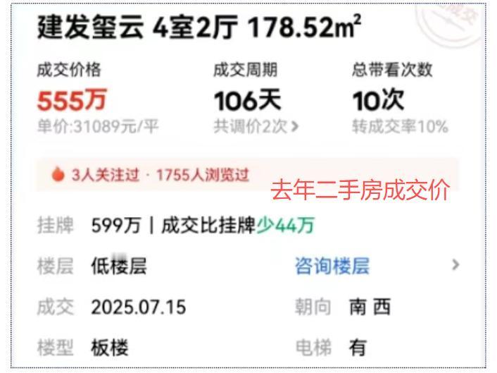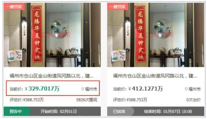 价差超200万!福州金山一豪宅流拍后再次上架![惊呆] 近日,法拍平台上架了福州金山建发玺云项目一套法拍房,起拍价格十分炸裂,仅18480元/㎡,总面积178.41㎡,法拍总价合计329.7万元。 对比去年7月,同小区成交的一套二手房555万元,折合单价31089元/㎡,价差居然超200万,实在令人唏嘘。 有意思的是,该房源曾于1月7日上次上架拍卖,不过因为无人应价而流拍,彼时起拍总价412.13万元,折合单价23100元/㎡。如今再次上架,起拍价仅为1.8万/㎡,不仅直接击破小区的价格底线,更是对周边二手次新改善盘形成“背刺”。[狗头] 目前,该套房源超6400人围观,但仍无人报名。