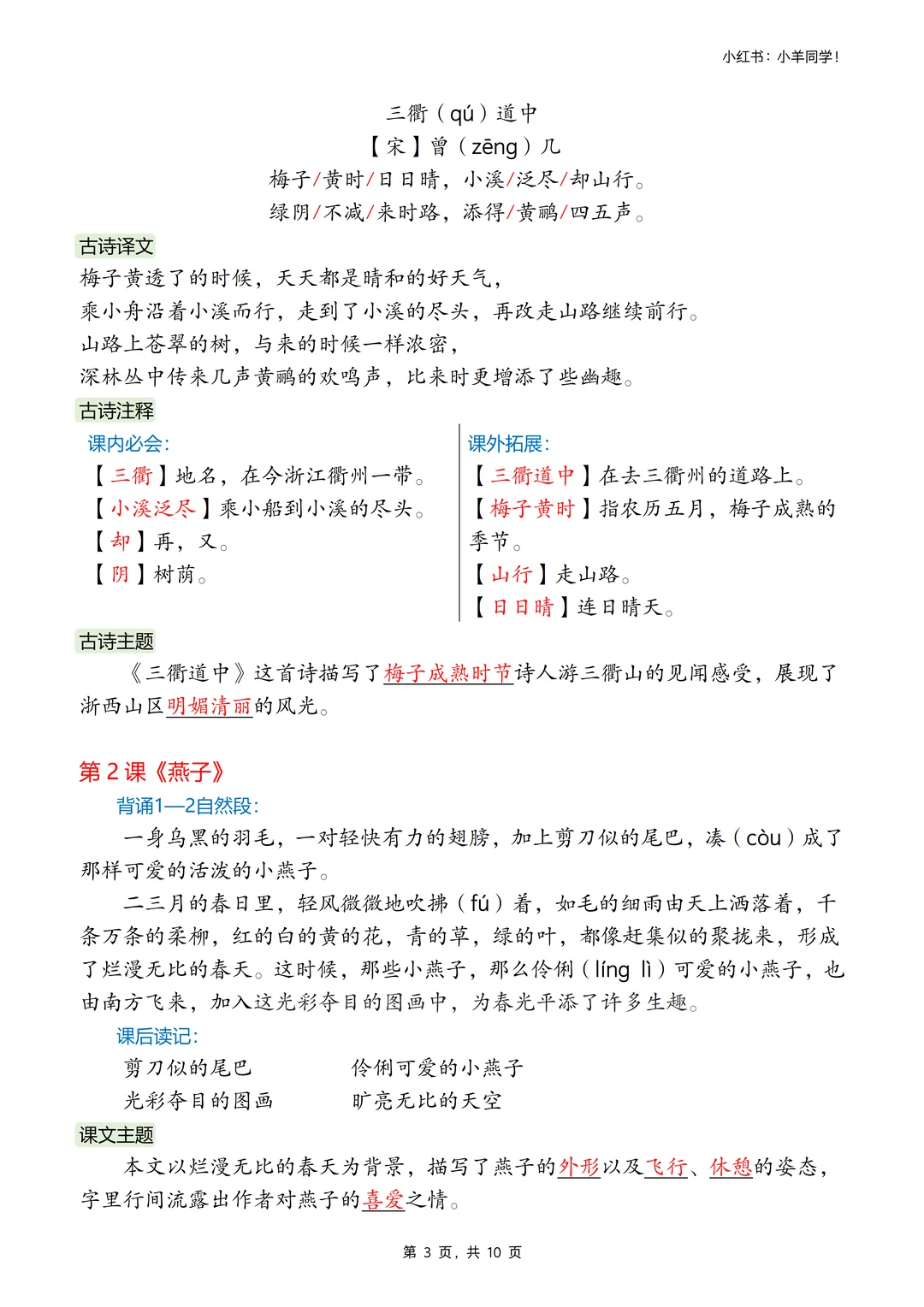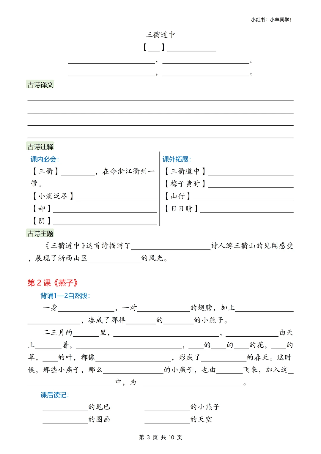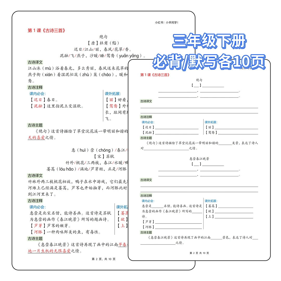 三年级下册丨语文必背内容汇总+默写