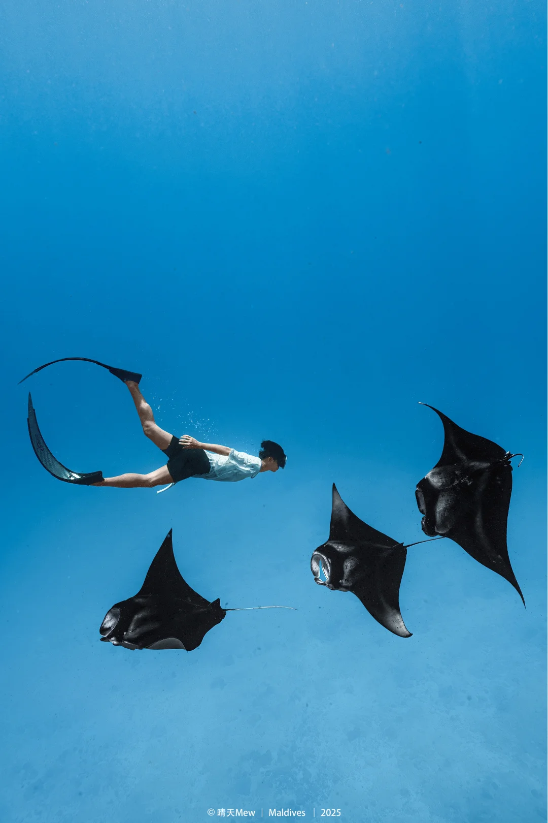 我们跳过了所有游客浮潜点,目标明确:鲸鲨、Manta群、沉船深潜。在马尔代夫,这些才是自由潜水员的终极勋章。