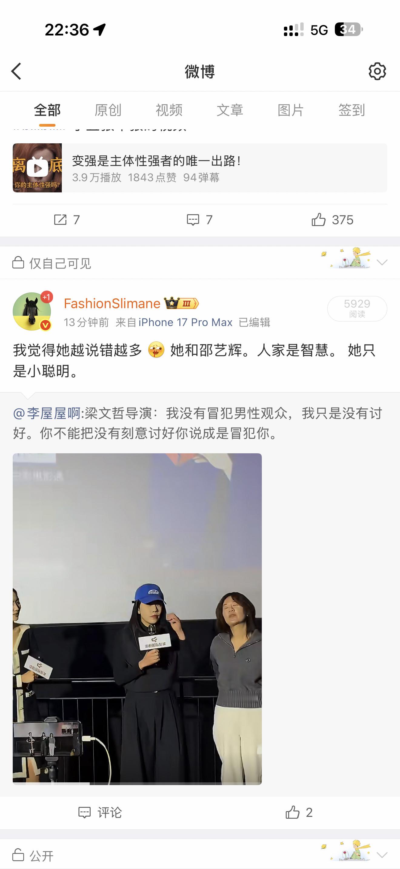 我发现 现在互联网的人越来越极端。 对性别的偏见极端化很严重。 我只是面评论了句和中立的话。说了导演“小聪明” 就被评论区阴阳了。 说的不就是我吗? 我们本土男性群体很多都很恶心我不否认。这些我也经常骂。 我甚至还经常打。